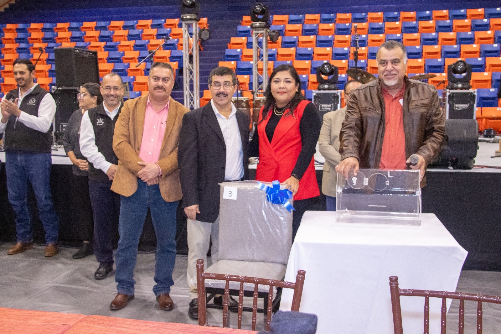 Durante el acto realizado en el Gimnasio Multidisciplinario, el rector estuvo acompañado del secretario de Administración, Marco Antonio Bastarse Contreras; y del secretario general del Sindicato Único de Trabajadores de la UAT (SUTUAT), Oscar Valdez Ávila.
