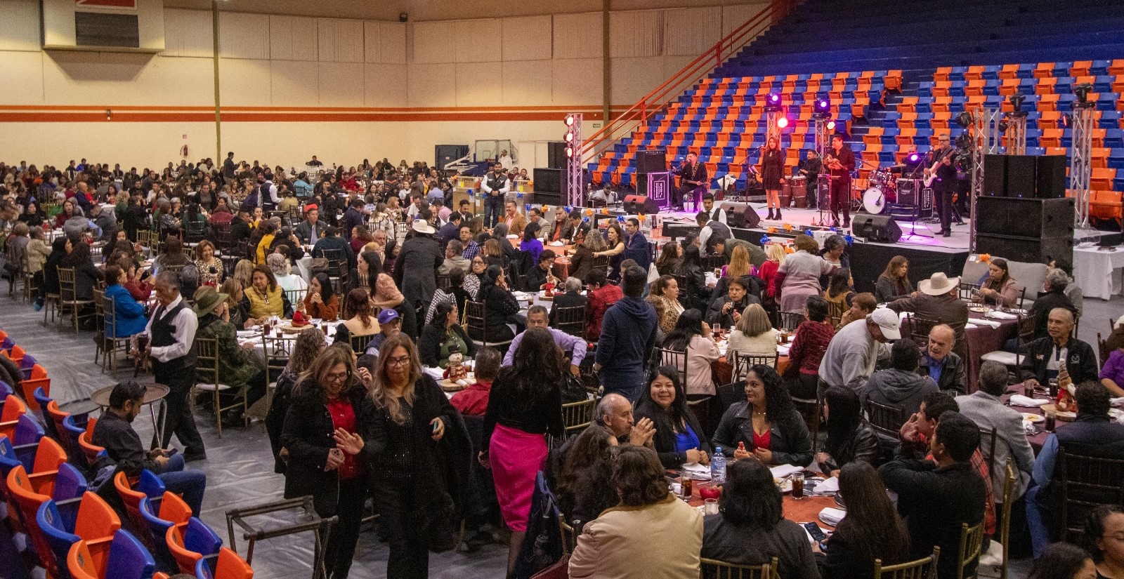 CD. VICTORIA, TAMAULIPAS, 7 DE DICIEMBRE DE 2023.- El rector de la Universidad Autónoma de Tamaulipas (UAT), MVZ. Dámaso Anaya Alvarado, presidió el tradicional festejo navideño que se ofreció a los trabajadores sindicalizados del Campus Victoria, donde destacó el compromiso de la institución por seguir mejorando las condiciones laborales de su personal.