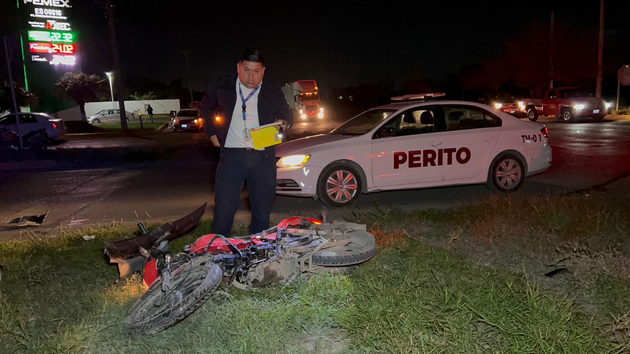 CD. VICTORIA, TAMAULIPAS, 15 DE ENERO DE 2024.- Cuando iba hacia el trabajo a bordo de su motocicleta, un empleado de una maquiladora fue embestido por un automóvil en el libramiento Naciones Unidas.