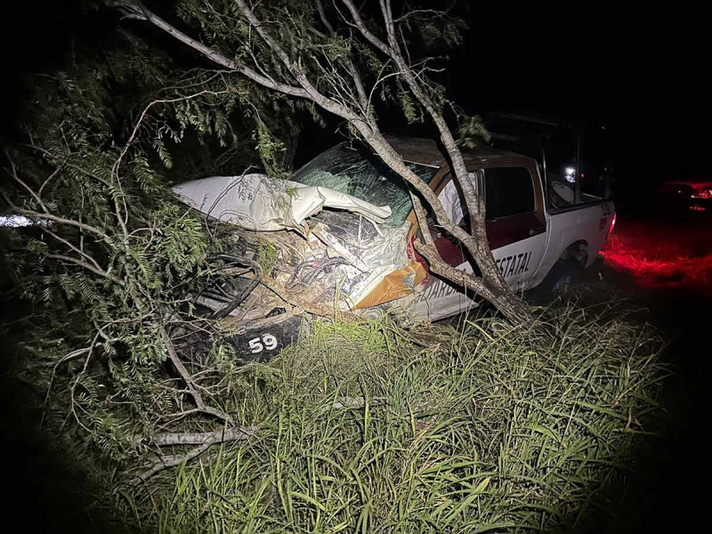Los delincuentes rafaguearon una patrulla la cual terminó por estrellarse con un árbol, resultando varios oficiales golpeados.