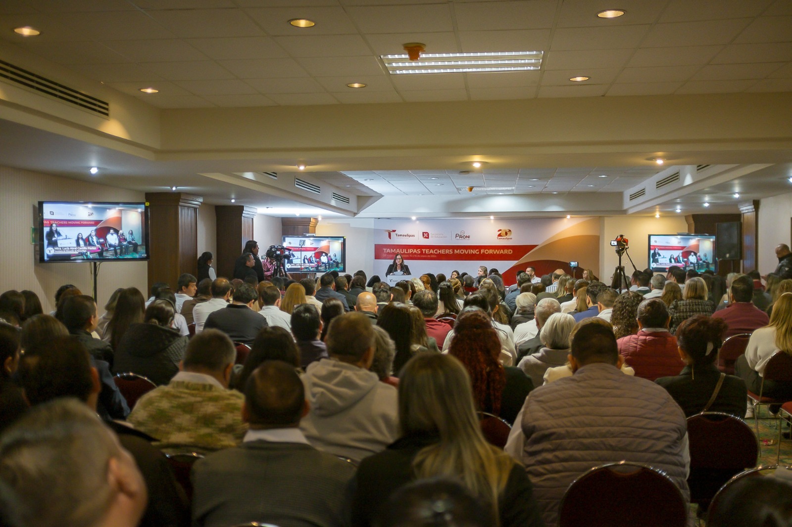 Cd. Victoria, Tamaulipas, 17 de enero de 2024.- Con el propósito de fortalecer los saberes y conocimientos de los asesores de inglés de Tamaulipas, reforzar sus estrategias de enseñanza y aprendizaje del inglés como lengua extranjera y sobre el papel central que tiene en el campo formativo “Lenguajes” en el Plan y los Programas de Estudio de la Nueva Escuela Mexicana, se llevó a cabo el Primer Encuentro Pedagógico: “Teachers Moving Forward”.