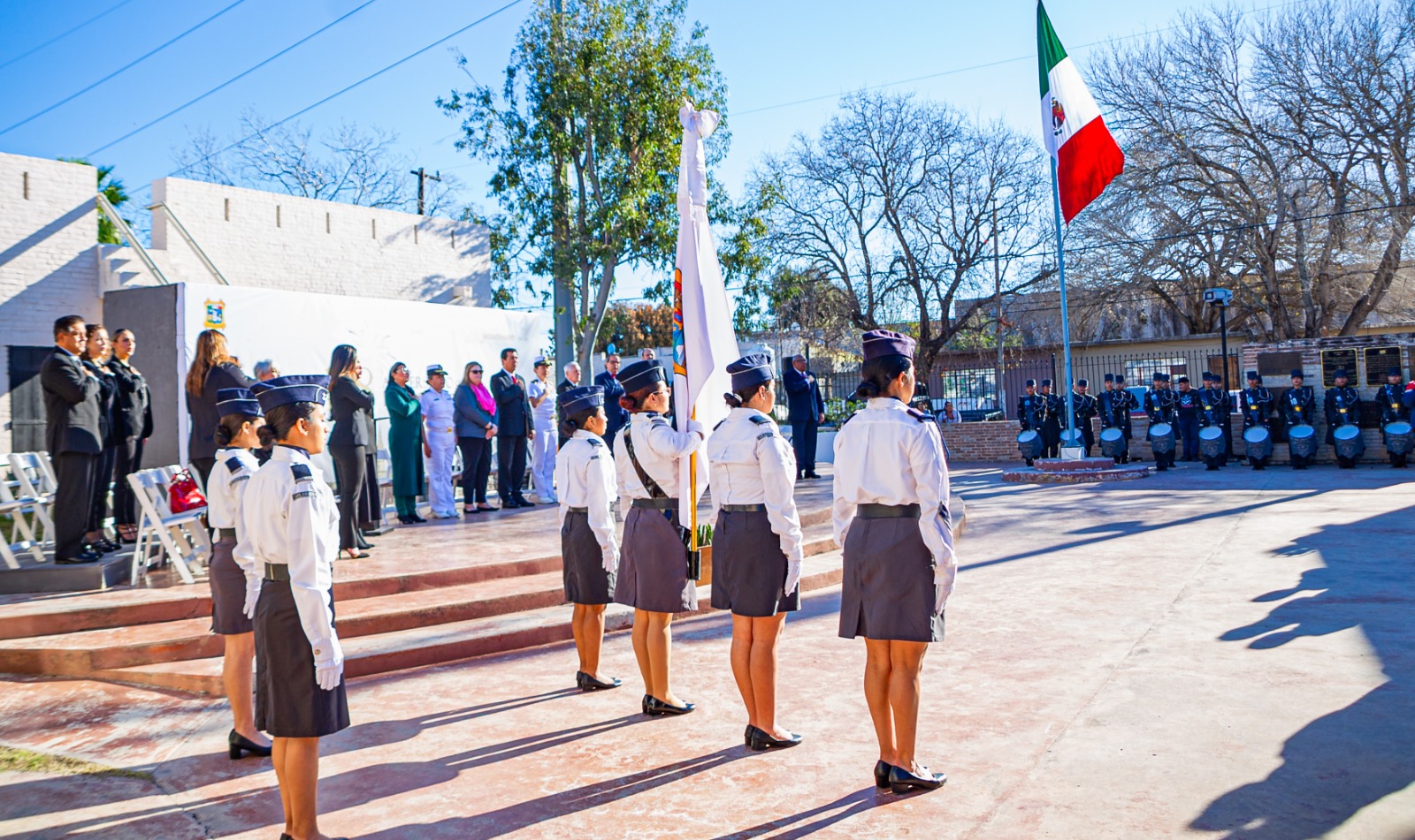 Previo al inicio de la sesión solemne de Cabildo, se realizó una ceremonia cívica, en la que el Cronista de la Ciudad, Jorge Chávez Mijares, dio lectura a la reseña histórica de Matamoros.