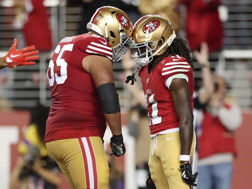 Previo a la anotación de Brandon Aiyuk, primera en la actual postemporada de la NFL, sería el mismo receptor de 25 años quien aprovecharía un inédito rebote en el casco de Kindle Vildor, consiguiendo la primera oportunidad y gol y llegando a las diagonales tres jugadas después.