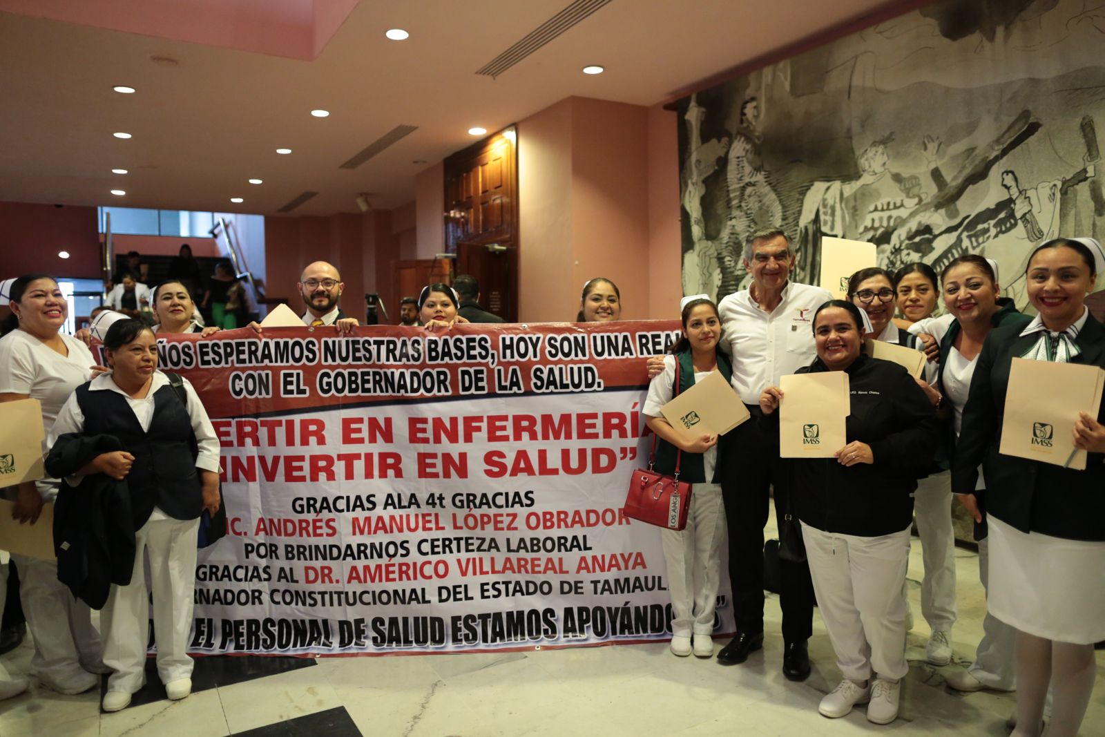 A nombre de las y los trabajadores beneficiados, Yaneth Marlene Elvir Sánchez, enfermera del Hospital General de Ciudad Victoria, agradeció el nombramiento recibido y aseguró que “toda la pesadilla y el martirio familiar se acabó a partir de este día”.