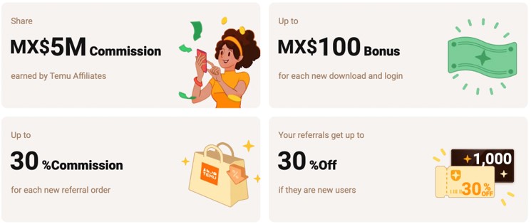 ¡Puedes ganar hasta MX$500,000 por mes! Si estás interesado en unirte al Programa de Afiliados de TEMU, te alegrará saber que ofrece una política de comisiones sencilla y transparente. Hay varias formas de ganar dinero, que se enumeran a continuación: