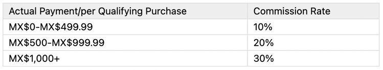 – Por compras entre MX$0.00 y MX$499.99, recibirás una comisión del 10%
