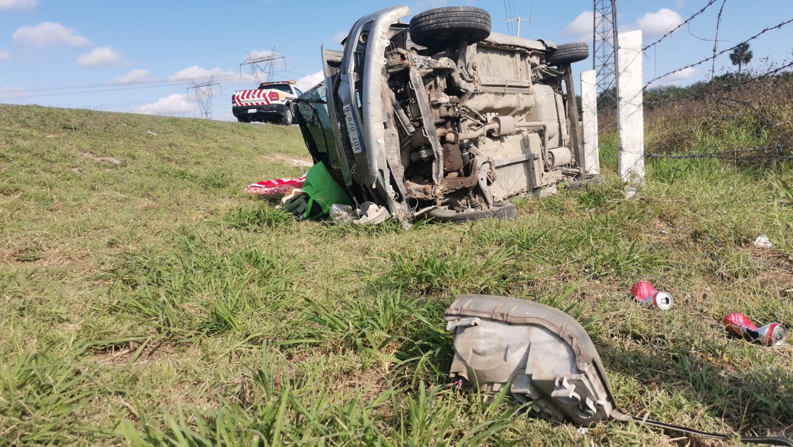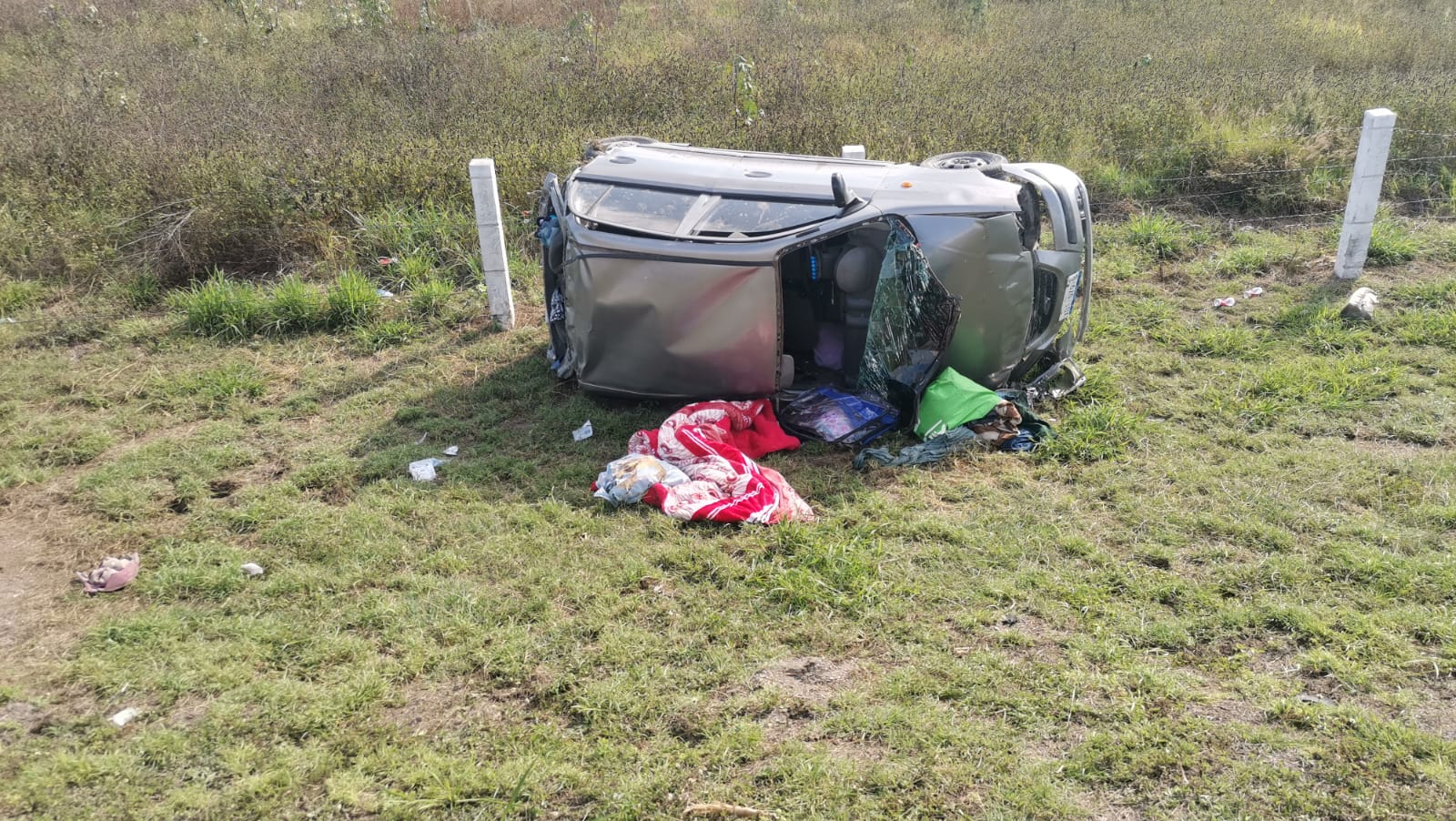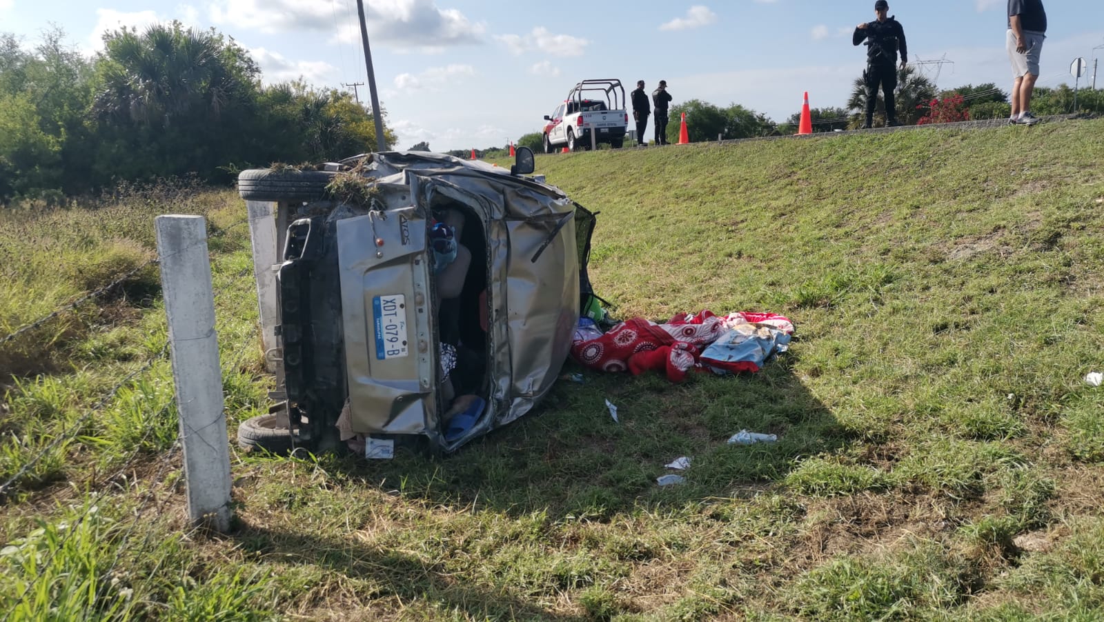 La mujer fue encontrada tirada a un costado de la carretera ya que salió eyectada por el parabrisas mientras el vehículo de la marca Dodge tipo Atos daba varias volteretas a un costado del camino pasando incluso por encima de un dren pluvial.