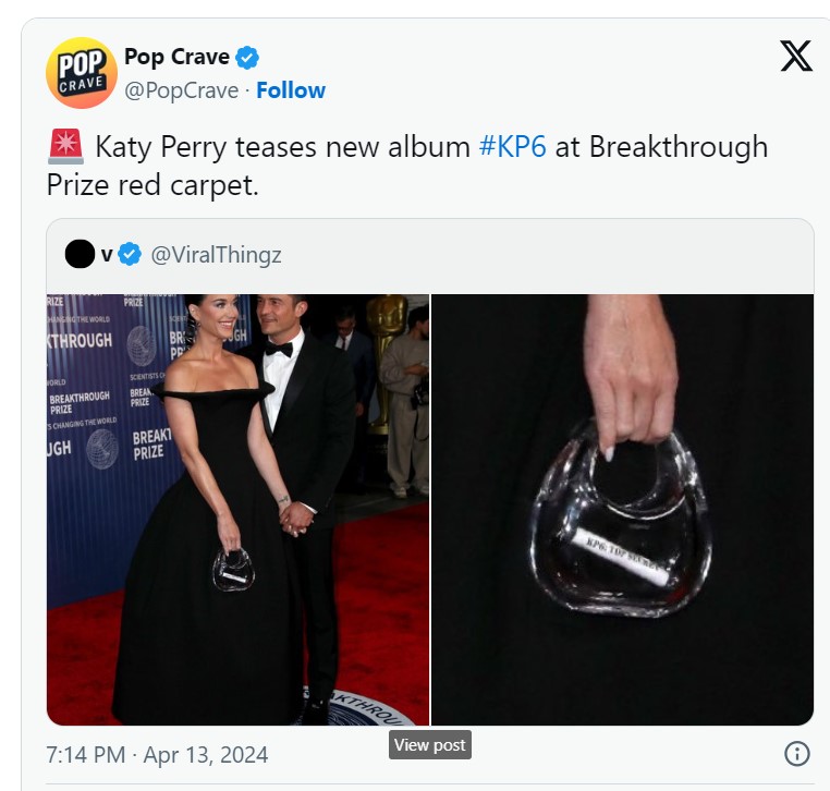 El último lanzamiento de Perry, “Smile”, data de 2020, lo que ha dejado a sus seguidores más fieles ansiosos por nueva música desde hace cuatro años. El anuncio intrigante durante el evento Breakthrough Prize, donde Perry llevaba una bolsa transparente con la inscripción “KP6 TOP SECRET”, ha despertado aún más la anticipación entre sus fans.