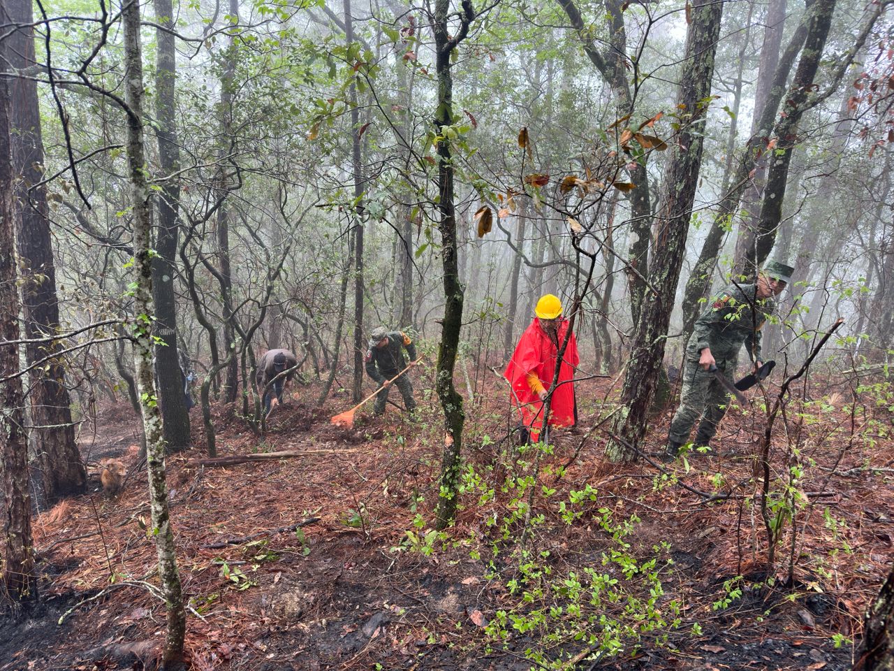 En el combate al siniestro se encuentran participando 21 efectivos y cuatro vehículos del Ejército Mexicano; así como 33 elementos de Protección Civil y siete más de Conafor del citado municipio, con el empleo de diversos equipos y material especializado para el combate de este tipo de incendios.