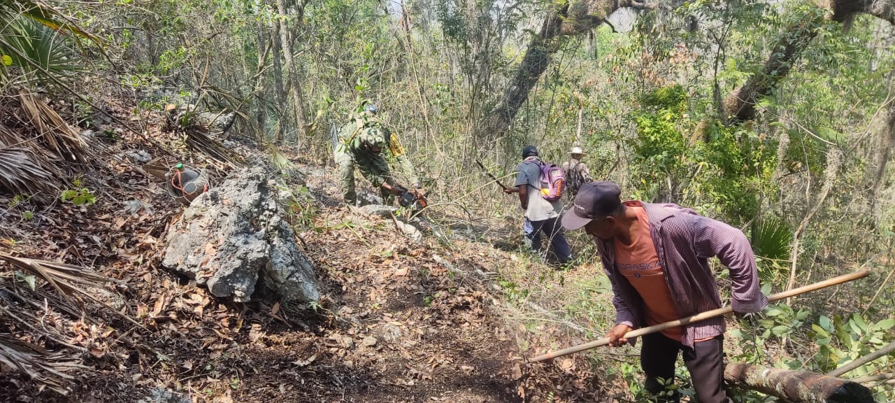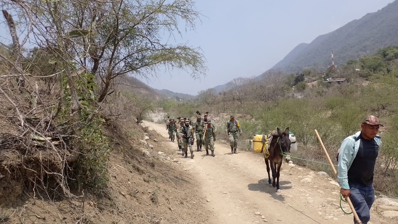 En el combate al incendio forestal se encuentran desplegados en el lugar 45 efectivos y seis vehículos del Ejército Mexicano, así como 22 agentes y