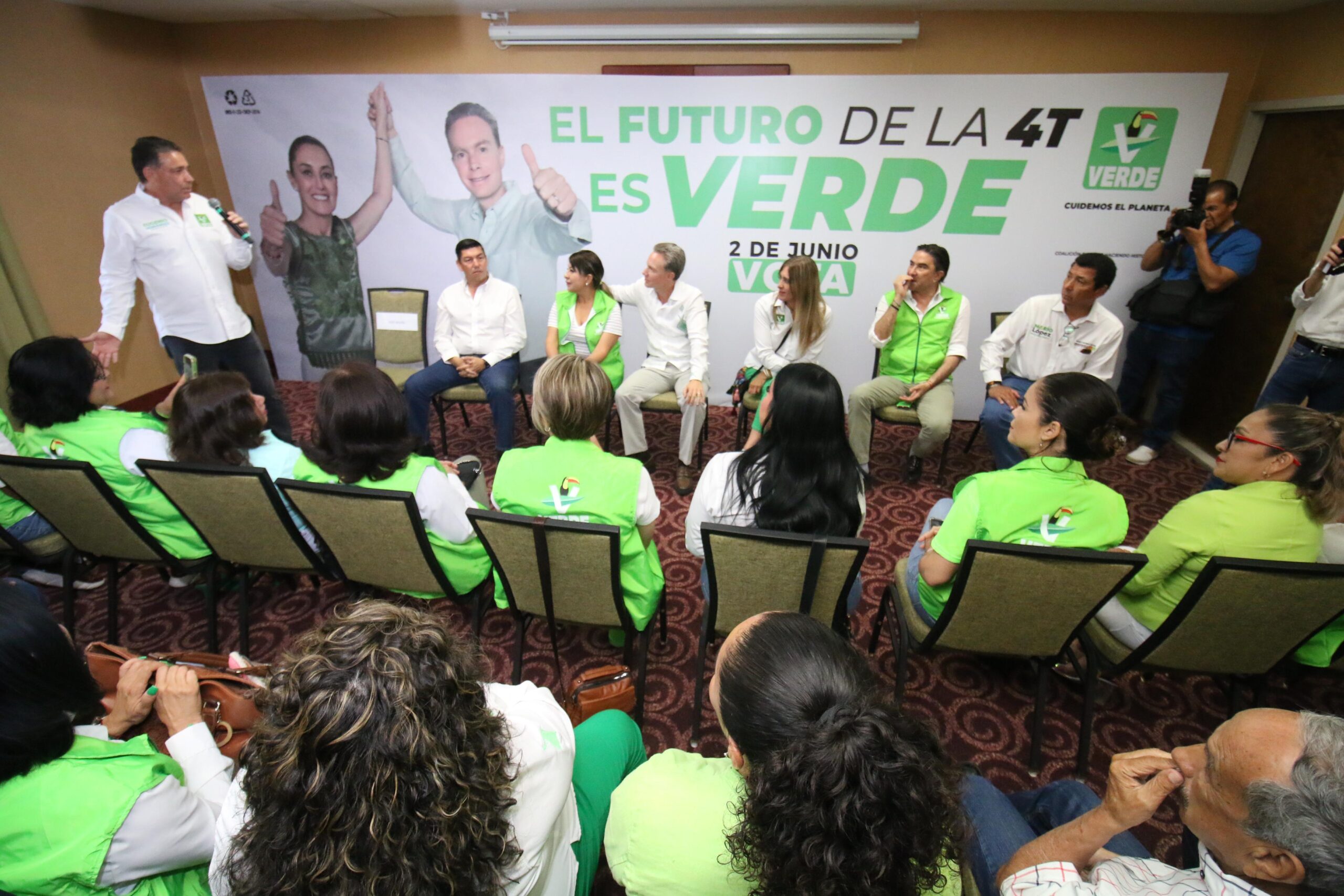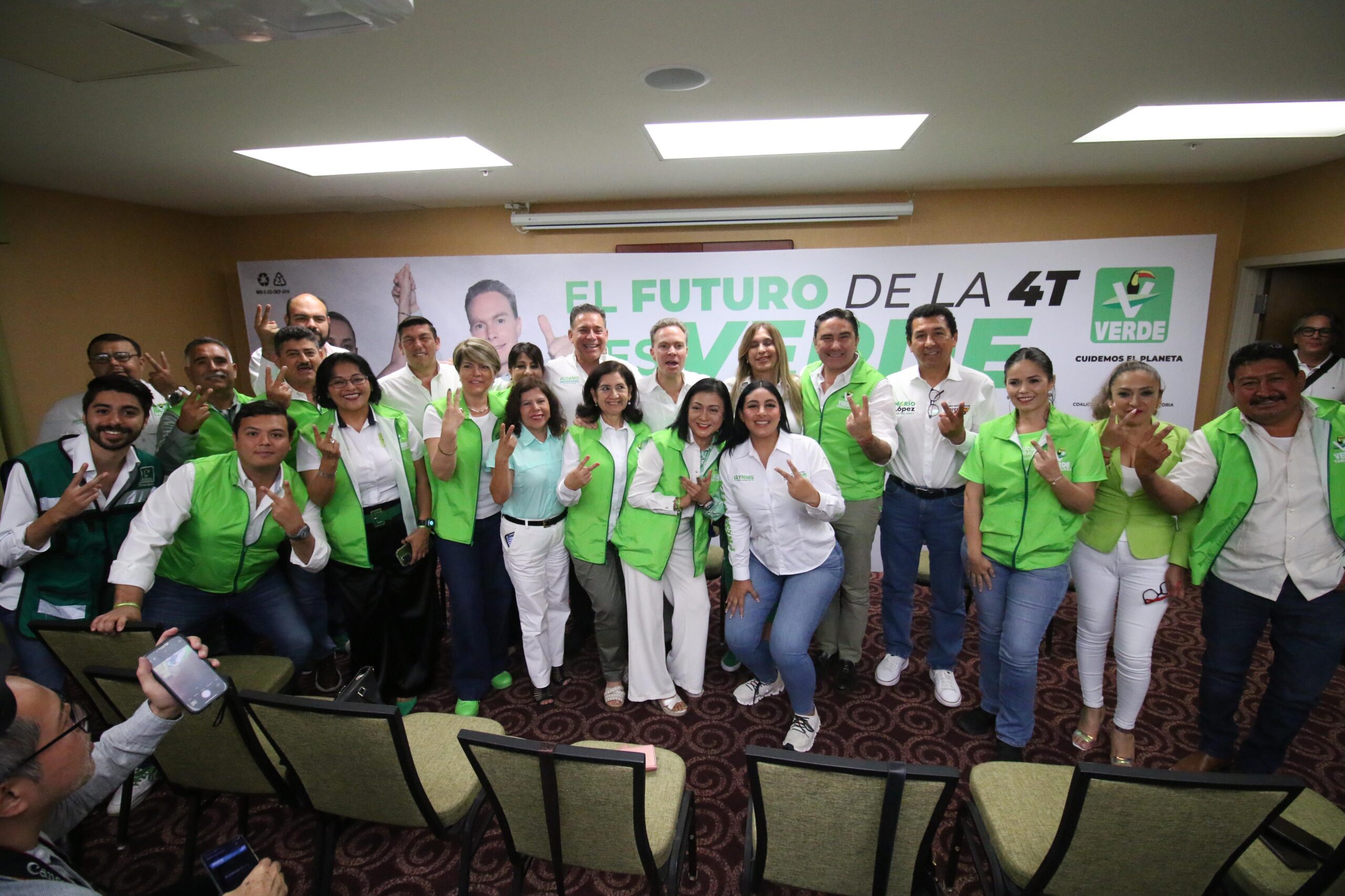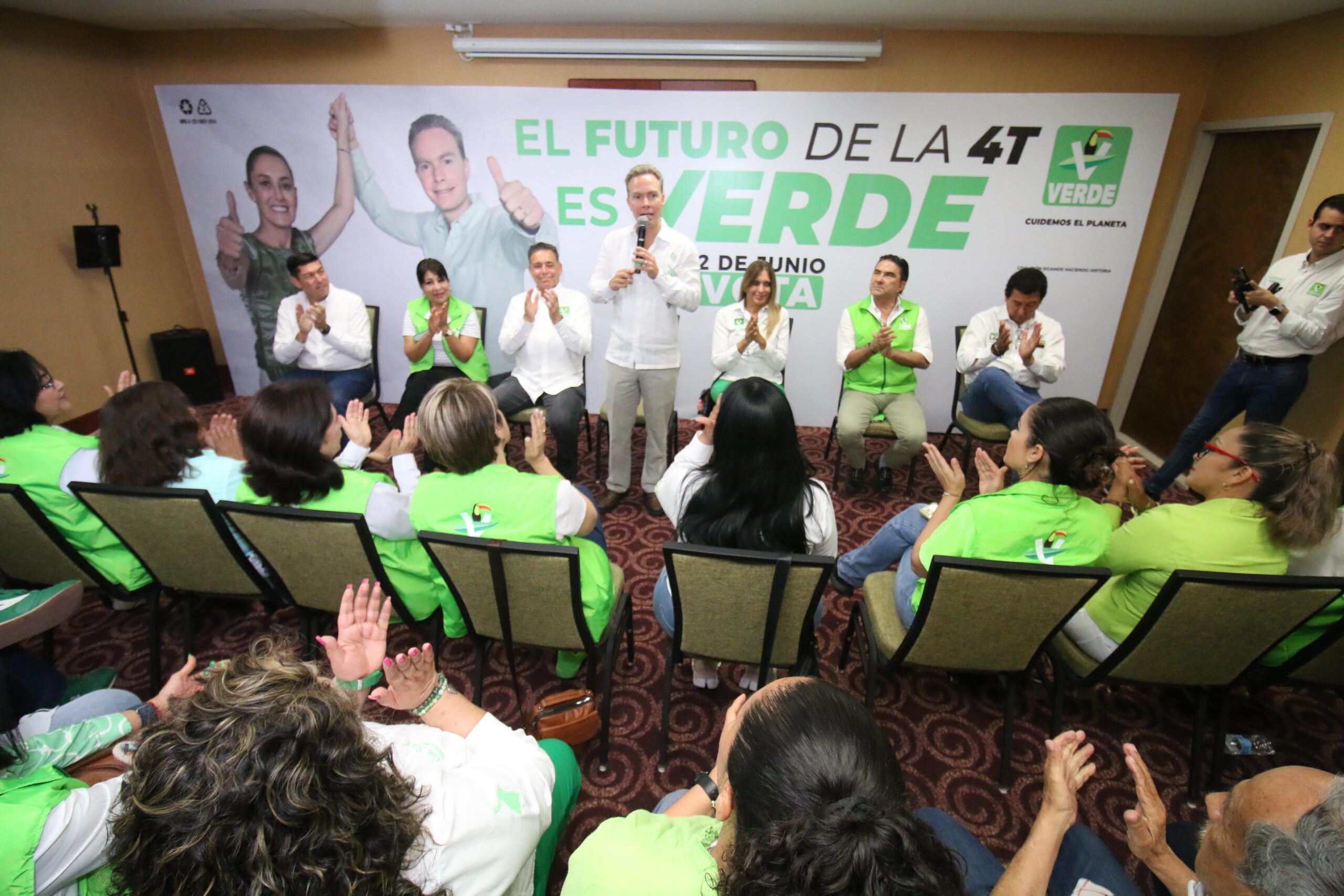 En el encuentro que tuvo el Senador con licencia Manuel Velasco con la familia Verde de Tamaulipas, estuvo arropado de quiénes encabezan las candidaturas locales y federales en el estado, así como del Comité Estatal del Partido Verde.