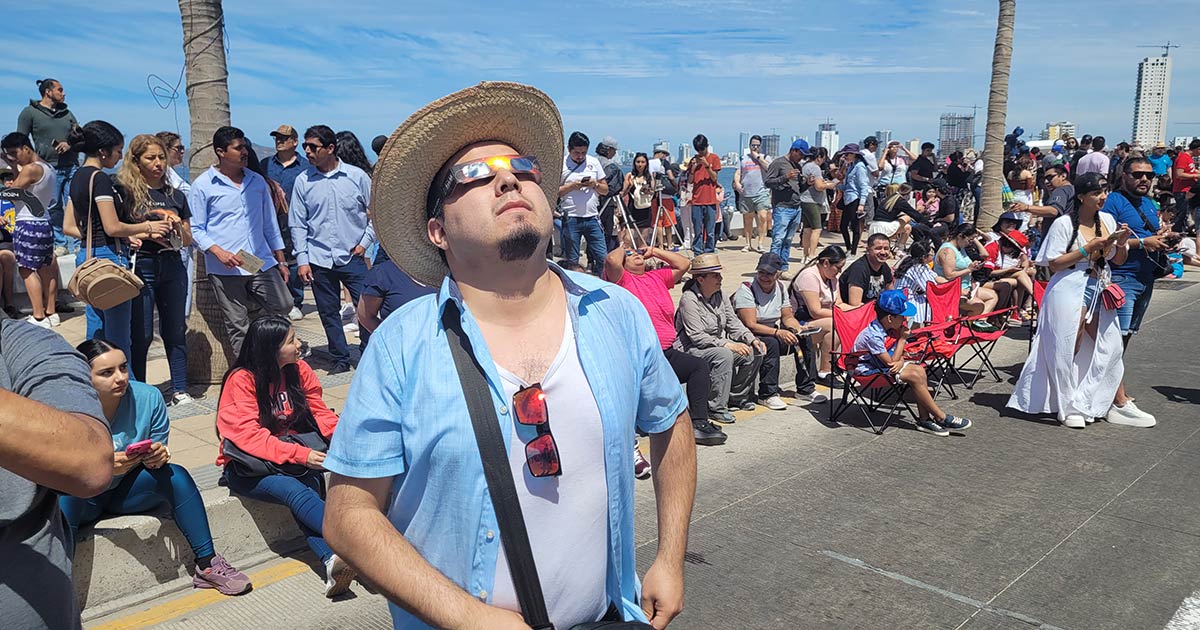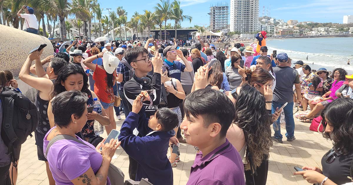 Cientos de personas llegaron desde muy temprano a los puntos de observación para el eclipse total de sol en Mazatlán, el malecón del puerto se fue llenando poco a poco, hasta quedar completamente abarrotado.