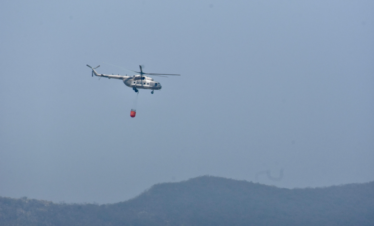 Como se recordará, el helicóptero M1 17 de la Secretaría de Marina arribó a esta Ciudad Capital el pasado lunes 13 de mayo para combatir el incendio forestal que se registra en El Cañón del Novillo.