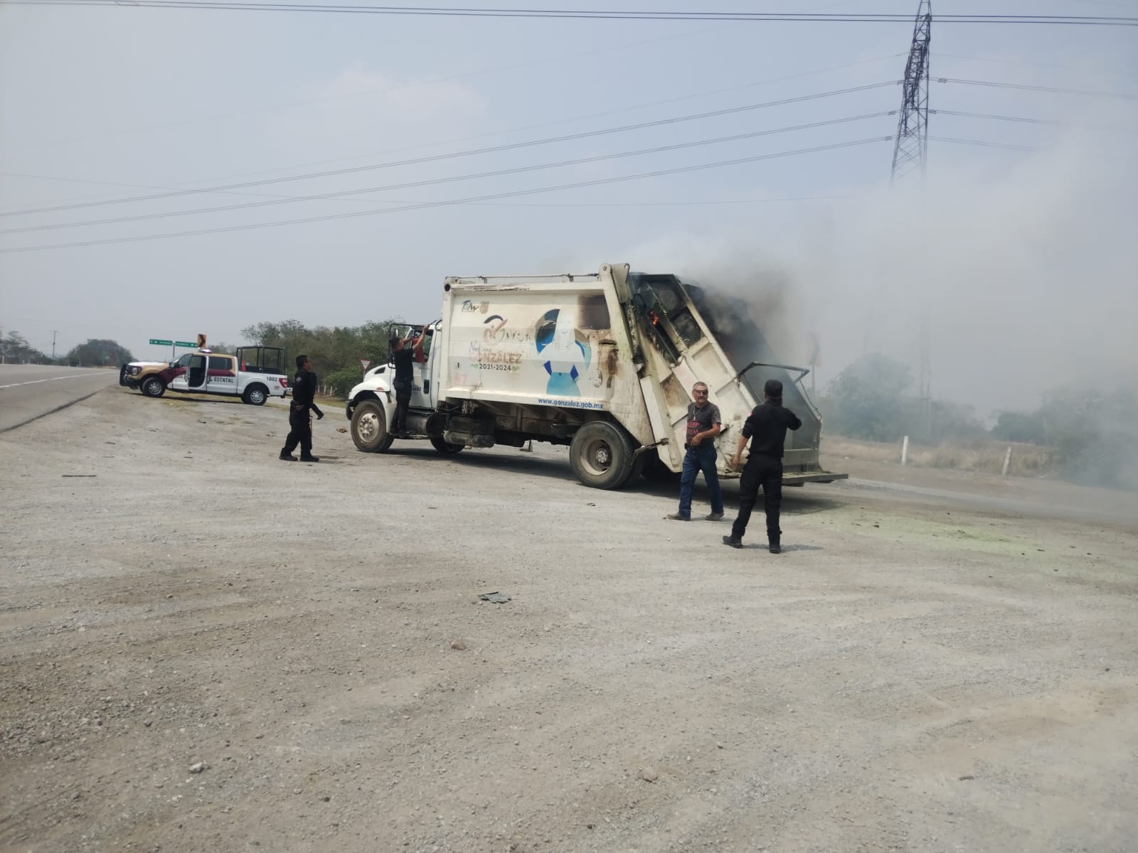 La unidad perteneciente al Ayuntamiento de González comenzó a incendiarse en la parte trasera, sitio que contenía los desechos recolectados durante la jornada.