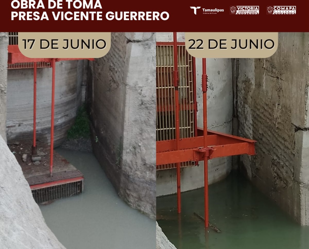 En el informe de la Conagua se precisó que del 20 al 22 junio la Presa Vicente Guerrero tuvo un incremento de almacenamiento de 252.852 millones de metros cúbicos.