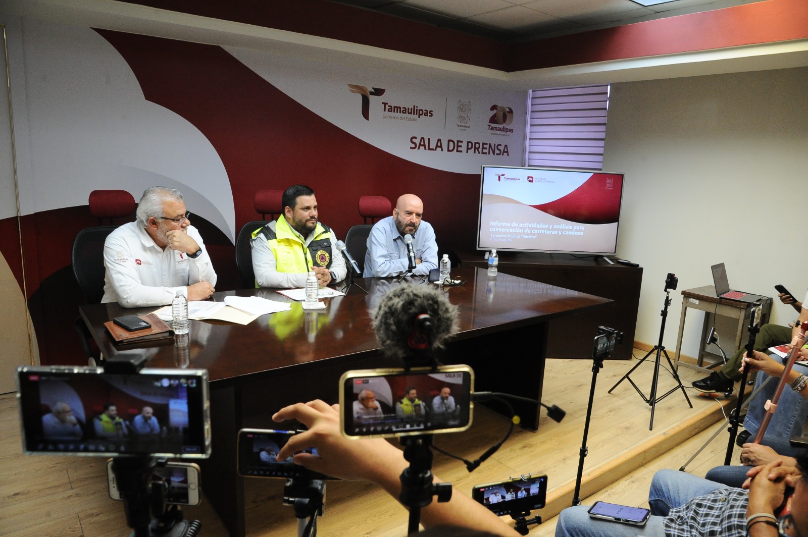 En rueda de prensa conjunta, los secretarios: de Obras Públicas, Pedro Cepeda Anaya y de Recursos Hidráulicos para el Desarrollo Social, Raúl Quiroga Álvarez, junto con el coordinador estatal de Protección Civil, Luis Gerardo González de la Fuente, informaron de las acciones realizadas antes, durante y después de la tormenta que permitió evitar que hubiera más afectaciones a la población, tal y como lo indicó el gobernador Américo Villarreal Anaya.