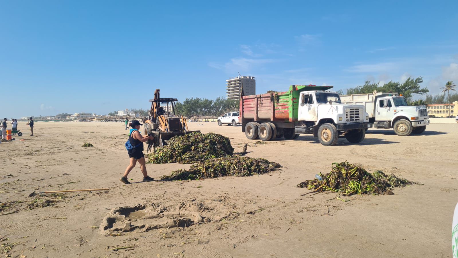 Para contrarrestar la presencia del lirio acuático en la playa Miramar de Ciudad Madero, la Secretaría de Turismo de Tamaulipas dispuso de cuatro camiones y dos retroexcavadoras para la limpieza del lugar.