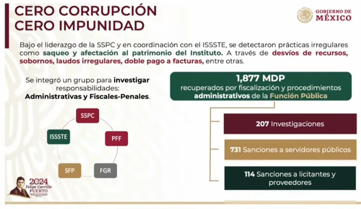 Recuperan mil 877 millones tras fiscalización al ISSSTE; desactivan modelo criminal para subir pensiones