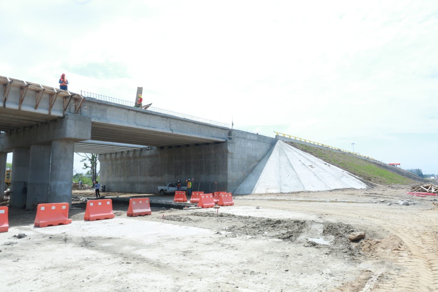 Cepeda Anaya y los responsables de la empresa contratista explicaron que se continúa trabajando en el armado y colado de la estructura del puente y ya se logró la terminación de los terraplenes que dan acceso al puente. Los taludes están protegidos con césped para evitar la erosión, le informaron, entre otros detalles de la construcción.