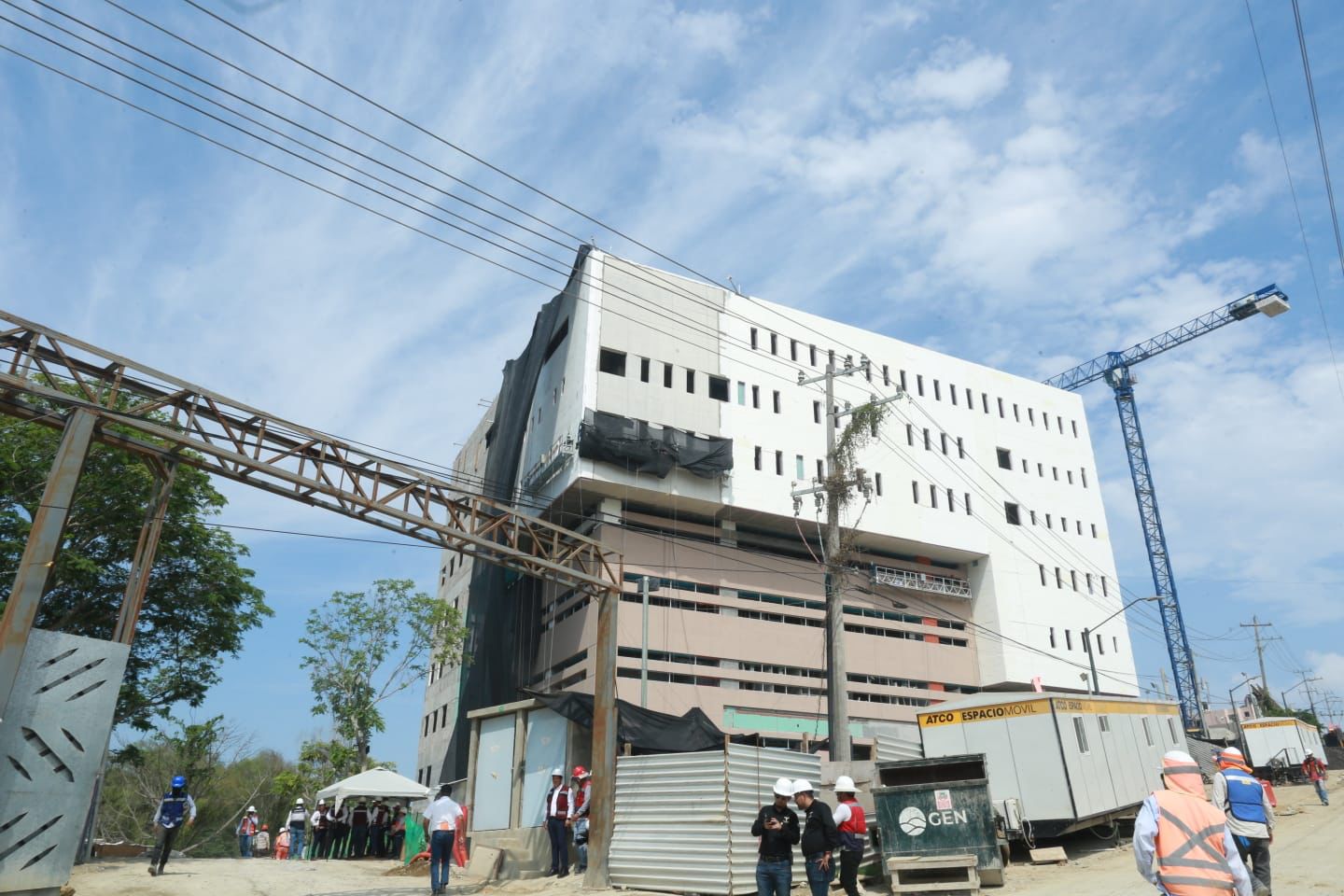 En el complejo de tres edificios de nueve niveles y uno de seis niveles, laboran 1,400 trabajadores de instalación y de obra civil, así como administrativos.