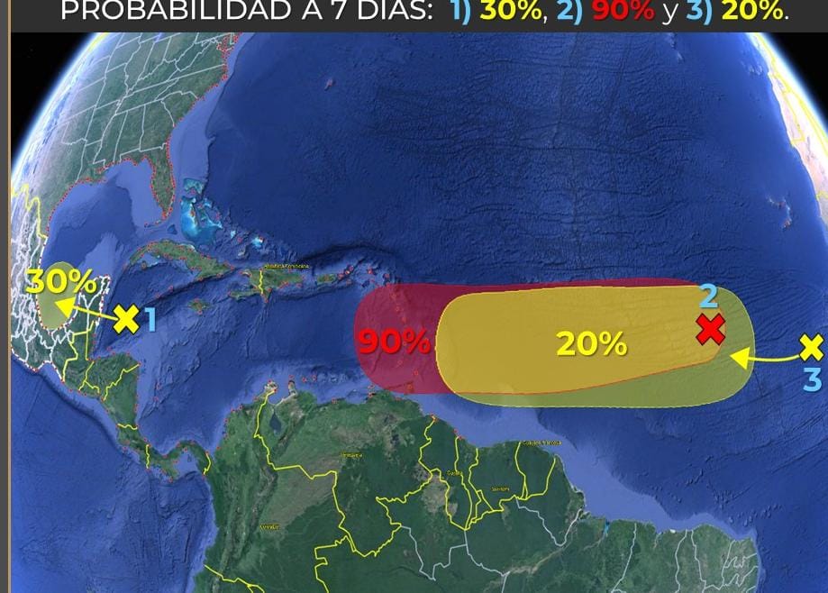 Una segunda zona de baja presión, con 90 por ciento de probabilidad para desarrollo ciclónico en 48 horas, se localiza aproximadamente a cinco mil 510 kilómetros al este de las costas de Quintana Roo.