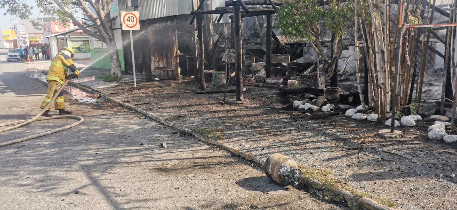 Pese a los esfuerzos de los “tragahumo”, el restaurante de carnes asadas fue completamente consumido por el fuego.