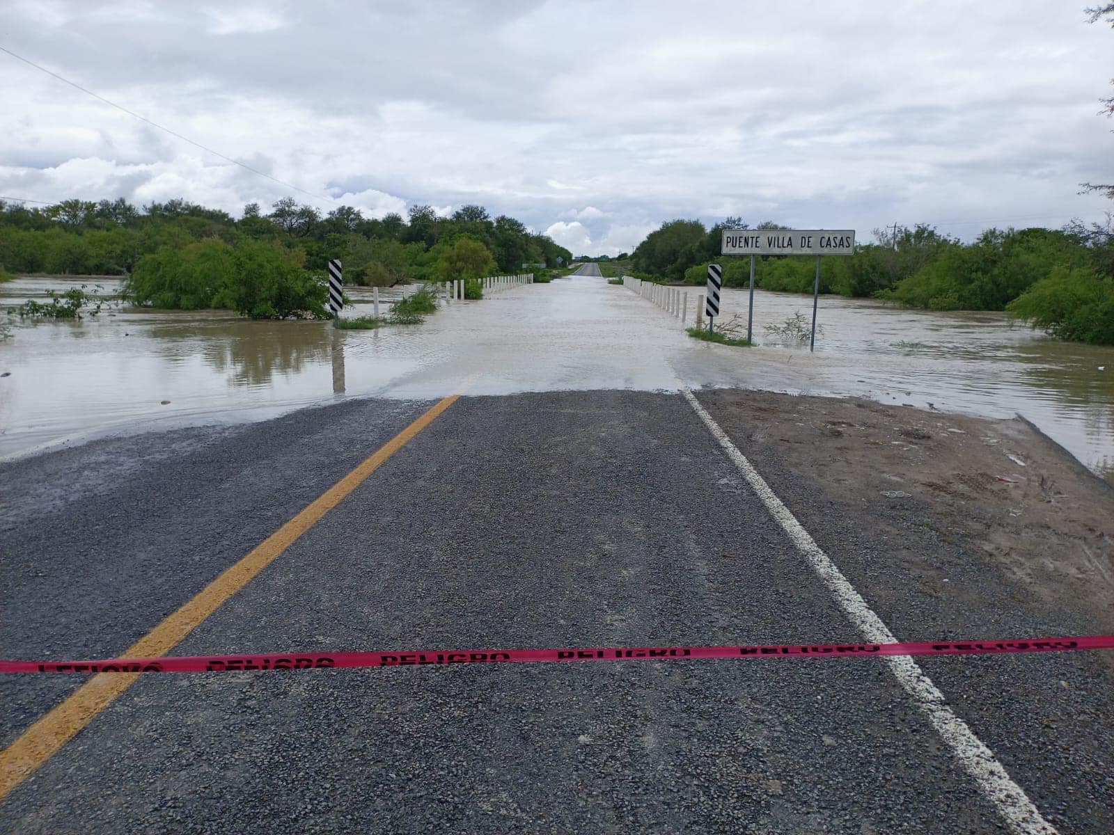 Villa de Casas, Tamaulipas (1 de julio de 2024).- Debido al aumento en el nivel de un arroyo por las lluvias intensas dejadas por la tormenta “Chris”, la circulación en la Carretera Federal 75, en el tramo Villa de Casas-Soto la Marina, se encuentra inhabilitada.
