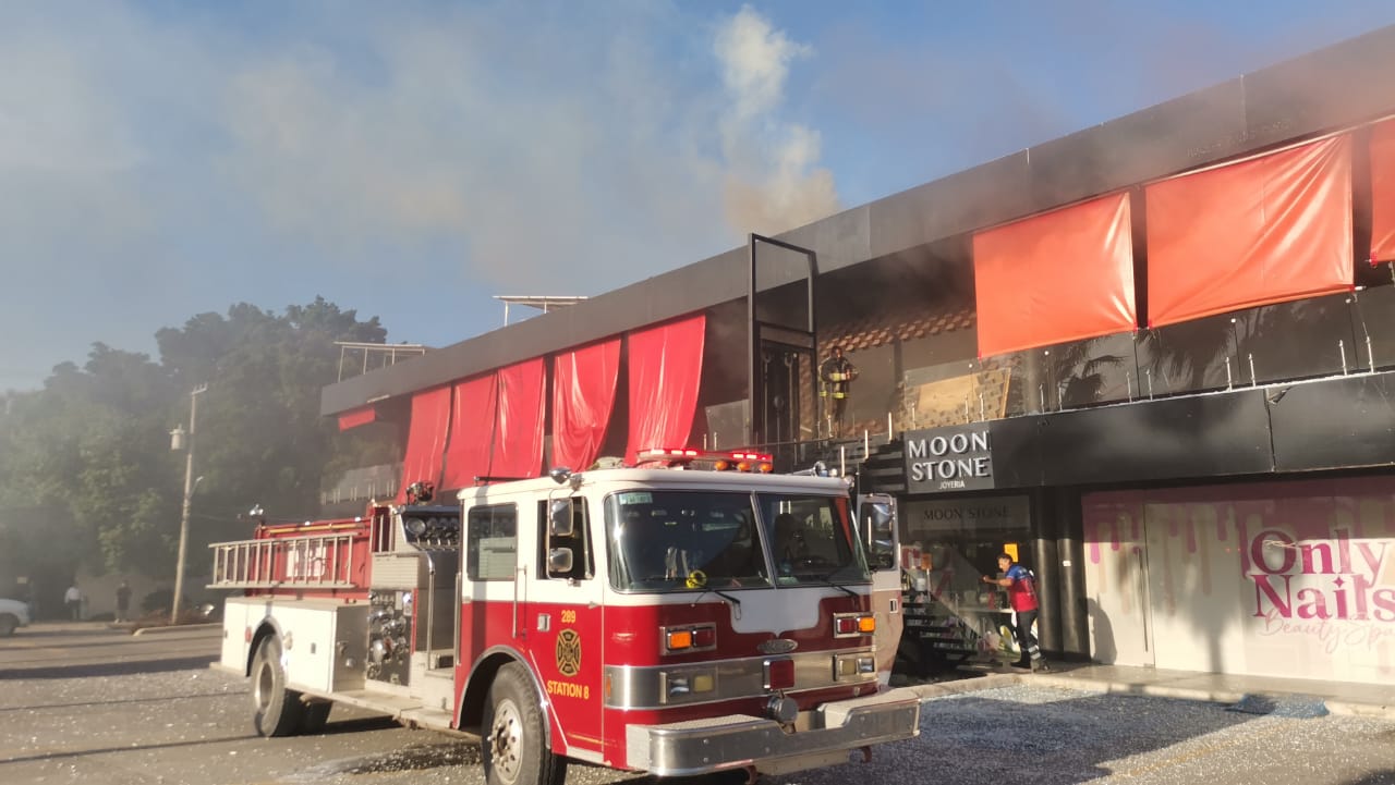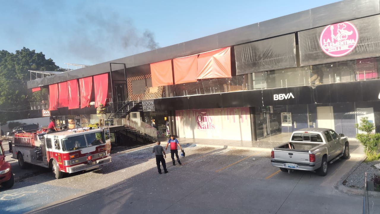 En cuestión de minutos el fuego fue controlado por los “tragahumo” para posteriormente los elementos de Protección Civil y Bomberos efectuar una revisión en el lugar para verificar las condiciones estructurales de los locales comerciales.
