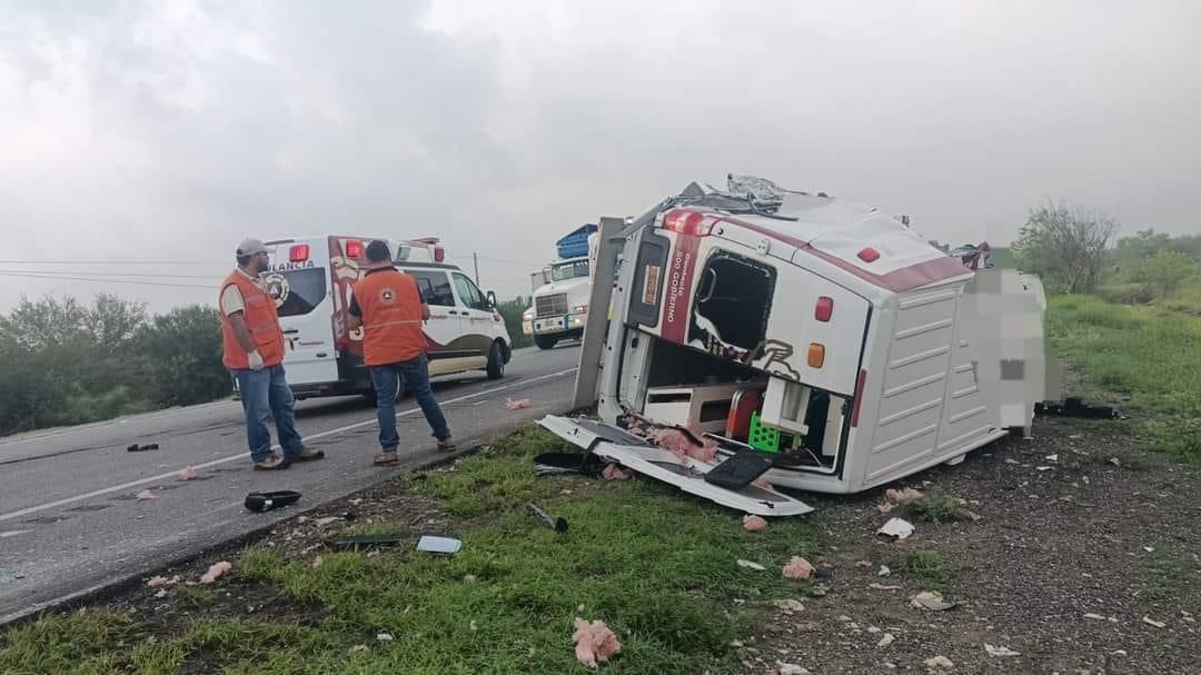 La ambulancia, propiedad del Issste, circulaba en sentido de norte a sur procedente de Tampico con destino a Monterrey, y el accidente ocurrió a la altura del kilómetro Siete aproximado de la carretera Victoria-Zaragoza.