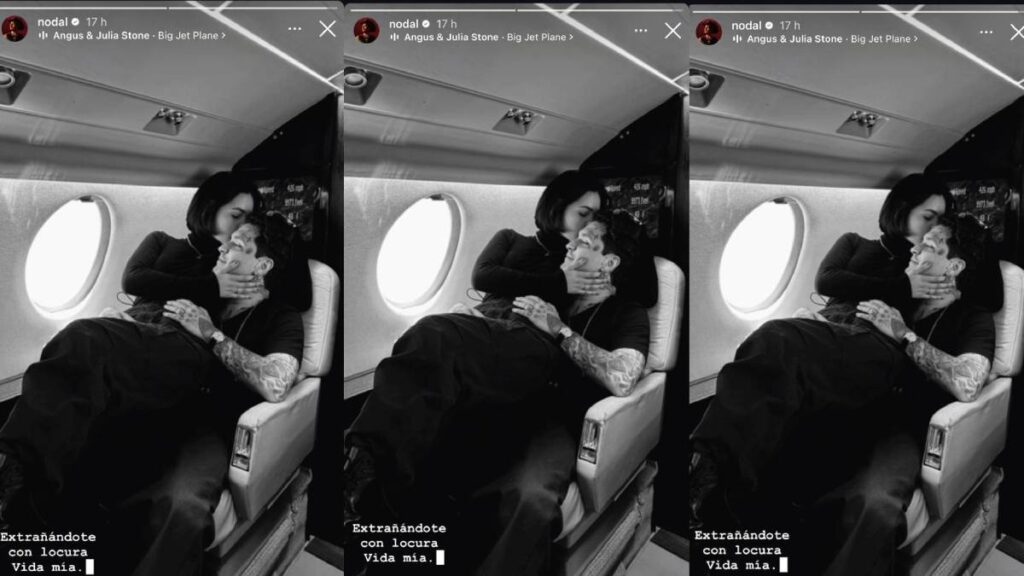 En sus redes sociales, Nodal compartió una foto en blanco y negro que rápidamente se volvió viral. En la imagen, tomada en su avión privado, se puede ver a la pareja sentada junta, con Ángela dando un tierno beso en la frente a Nodal, mientras él la abraza. La imagen está acompañada de la emotiva frase: “Extrañándote con locura vida mía”.