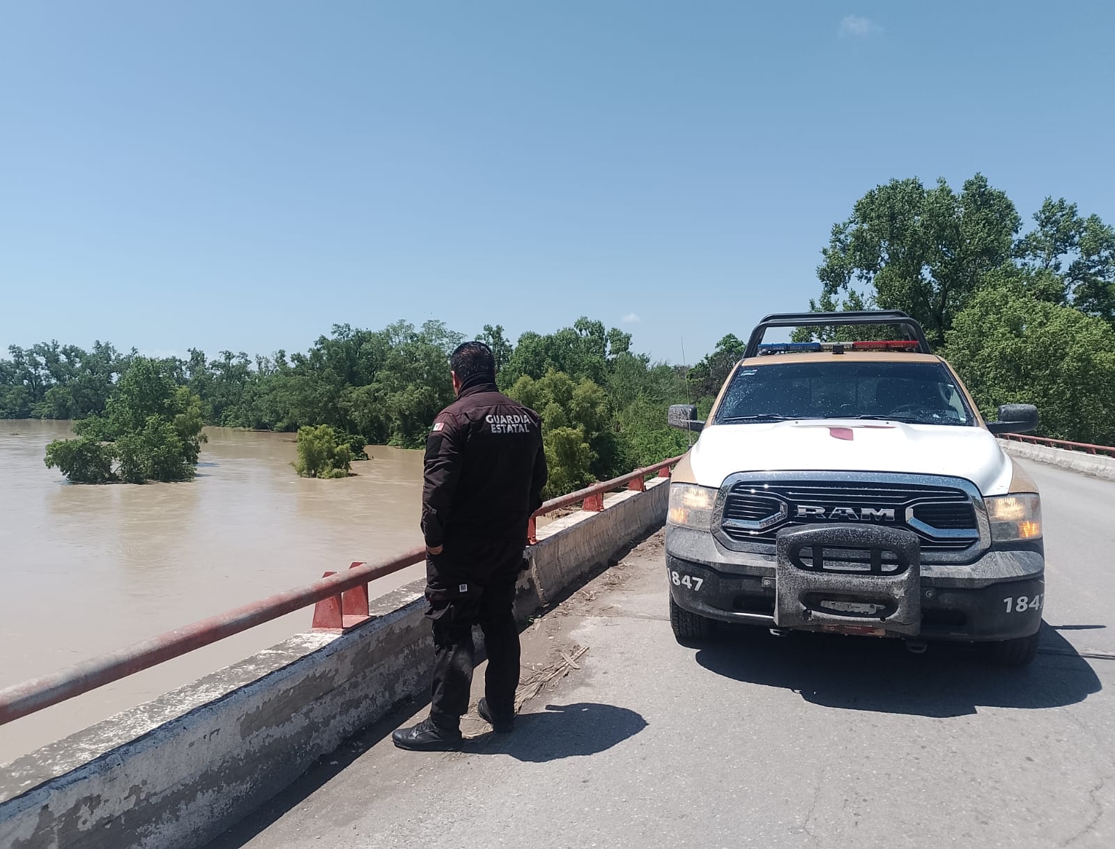 Con la finalidad de preservar la integridad de la población y proporcionar una respuesta inmediata ante emergencias, en diferentes municipios personal de la Guardia Estatal realiza recorridos de seguridad y vigilancia, retirando a las personas, y acordonando áreas con riesgo de desbordamiento.