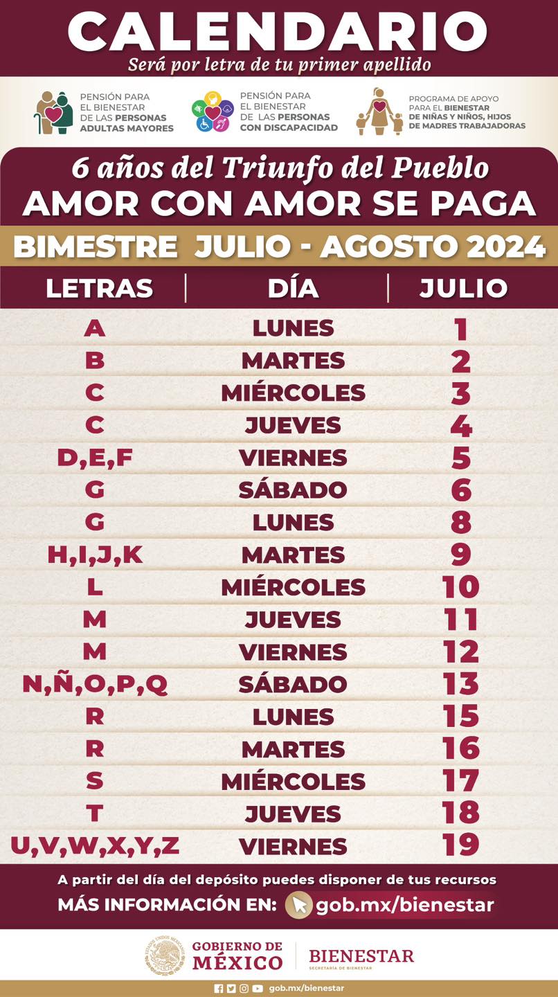 Para el bimestre julio-agosto, derechohabientes y beneficiarios recibirán pensión a través de depósito bancario y para brindar mejor atención a derechohabientes, el depósito bancario se realizará de acuerdo con la letra inicial del primer apellido.