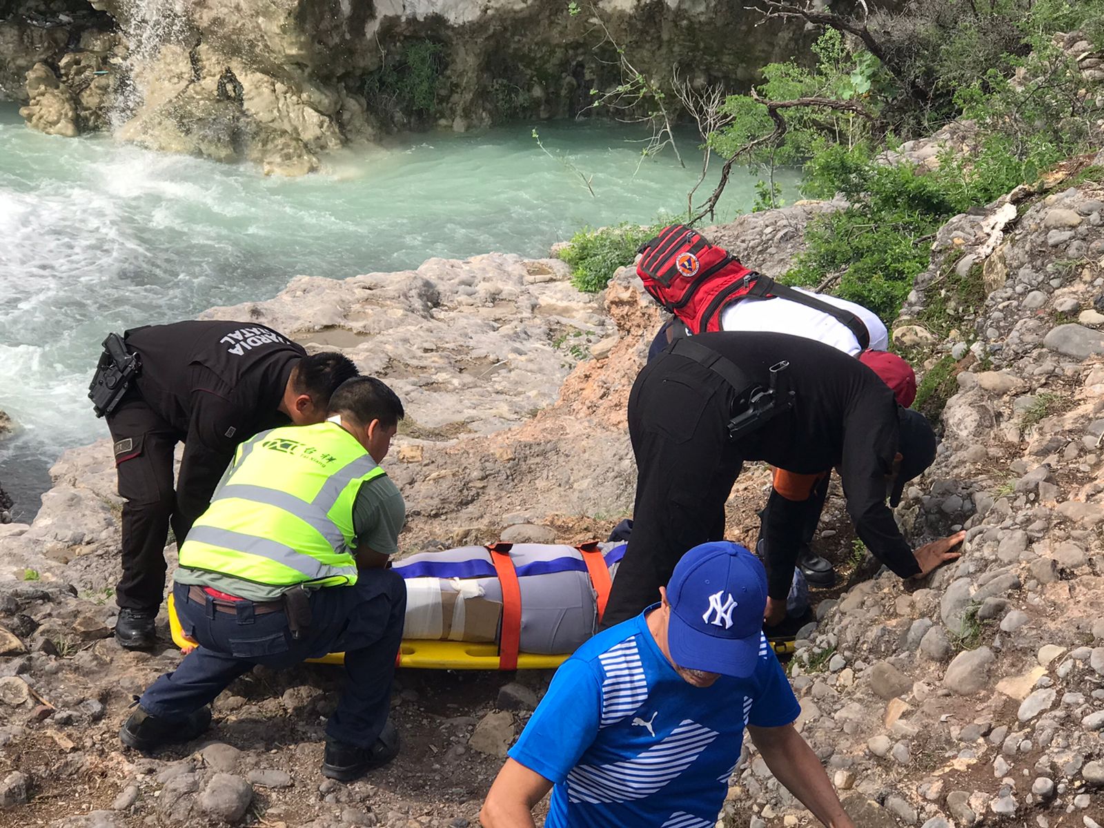 Ciudad Victoria, Tamaulipas (28 de julio de 2024).- Con una pierna fracturada terminó su visita a las Cascadas de la Boca de Juan Capitán una mujer que cayó al suelo cuando presuntamente intentaba tomarse algunas fotografías en el lugar.