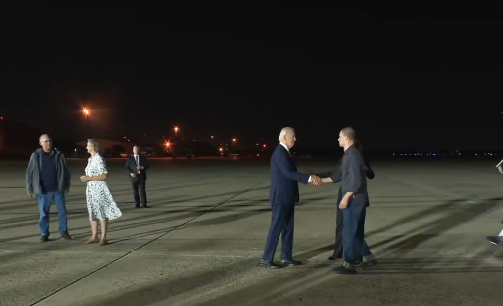 El 1 de agosto de 2024, el presidente Joe Biden y la vicepresidenta Kamala Harris dieron la bienvenida a tres estadounidenses liberados en un intercambio de prisioneros con Rusia, el más grande desde la Guerra Fría. Los periodistas Evan Gershkovich y Alsu Kurmasheva, junto con el exinfante de marina Paul Whelan, llegaron a la Base Aérea de Andrews en Maryland, provenientes de Ankara, Turquía.