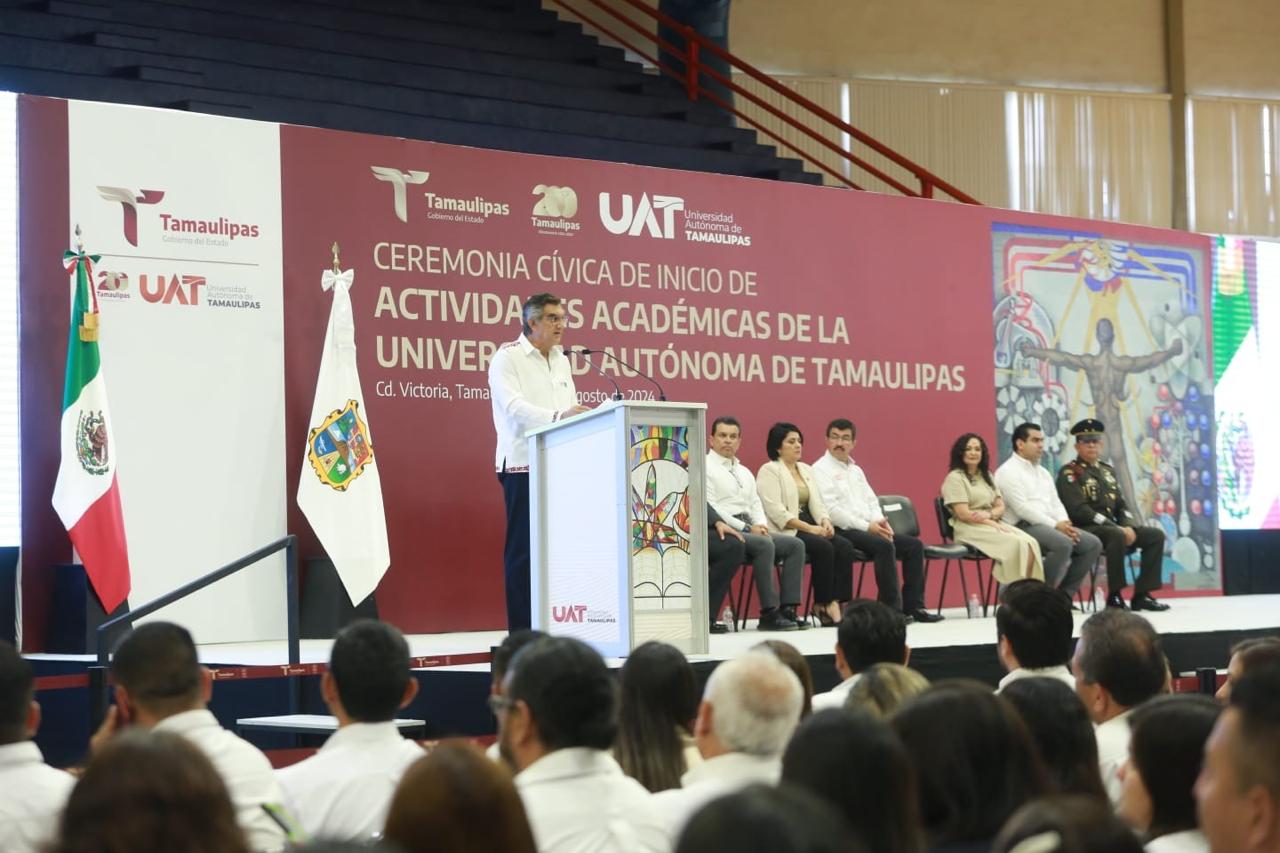 Al asistir a la ceremonia de inicio de actividades académicas de la UAT, junto al rector Dámaso Anaya Alvarado, el gobernador refrendó su apoyo a la institución para lograr mayores oportunidades de desarrollo.