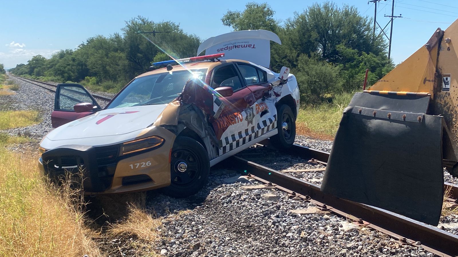 La máquina de Ferromex que se utiliza para la supervisión y reparación de las vías circulaba en condiciones normales mientras la patrulla de Tránsito Estatal circulaba en sentido de sur a norte por la antigua carretera a Mante hacia Ciudad Victoria.