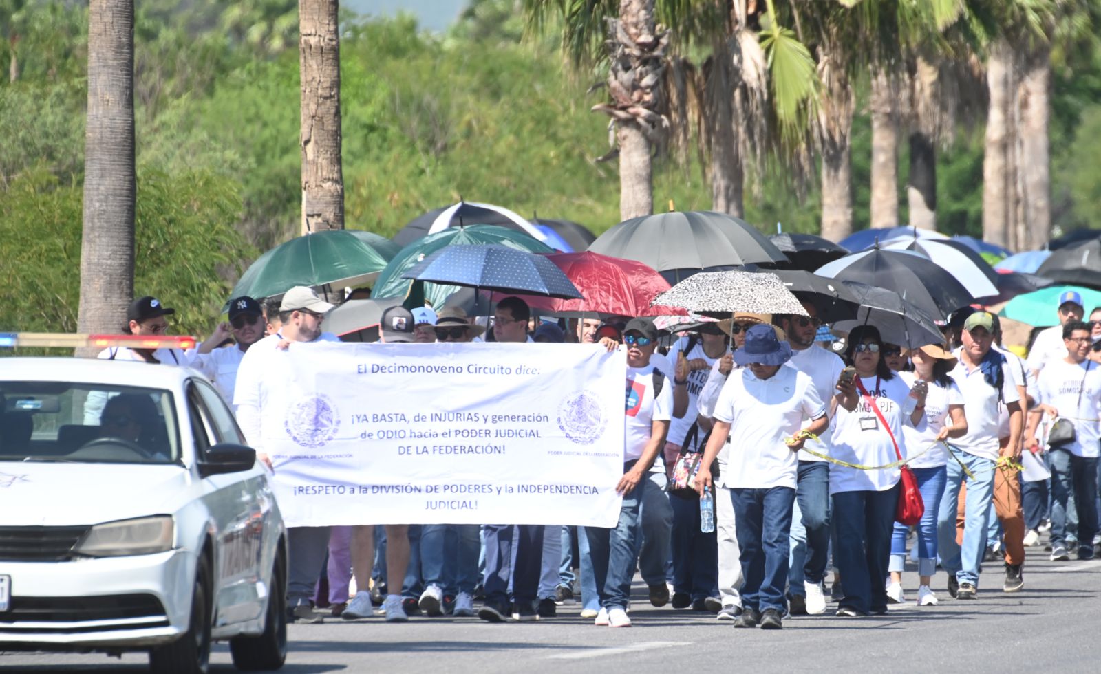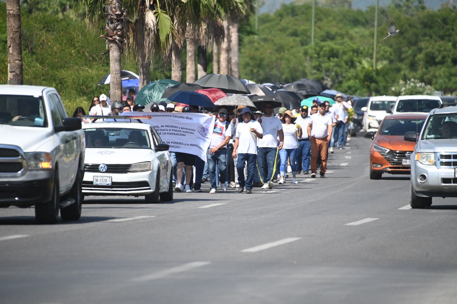 Ciudad Victoria, Tamaulipas (20 de agosto de 2024).- Después de parar labores y colocar cadenas y candados en los juzgados federales el día de ayer, esta mañana, en manifestación de rechazo a la reforma al Poder Judicial, alrededor de 300 trabajadores del Poder Judicial de la Federación realizaron una marcha por el Bulevar Praxedis Balboa para llegar al Congreso del Estado.