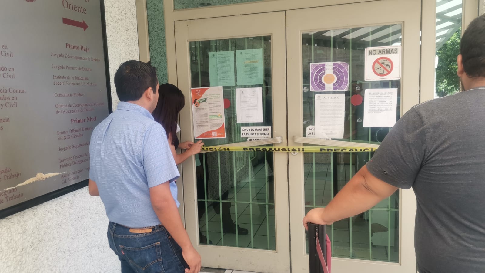 Colocando cintillas amarillas en los accesos a los inmuebles del Décimo Noveno Circuito, los trabajadores del Poder Judicial de la Federación en Tamaulipas se suman a los al menos cinco estados de la República que iniciaron de manera simultánea hoy lunes un paro indefinido de labores.