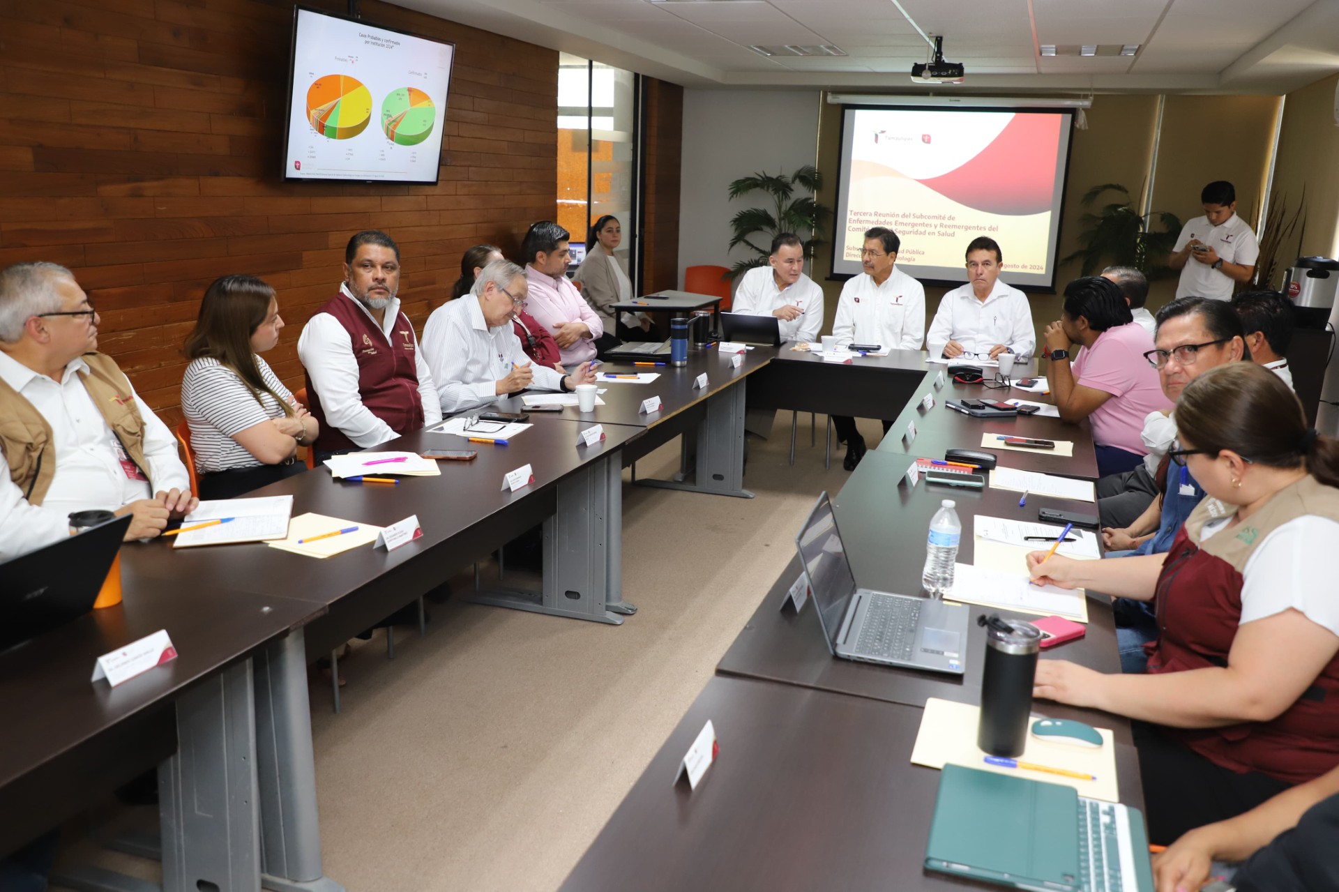 En la reunión se presentaron los casos que a la fecha se han registrado en la entidad, los cuales suman 444 confirmados por laboratorio y se distribuyen en los municipios de Tampico con 99, Madero 63, Altamira 63, Victoria 62, Matamoros 66 y el municipio de Reynosa registra 31 pacientes.