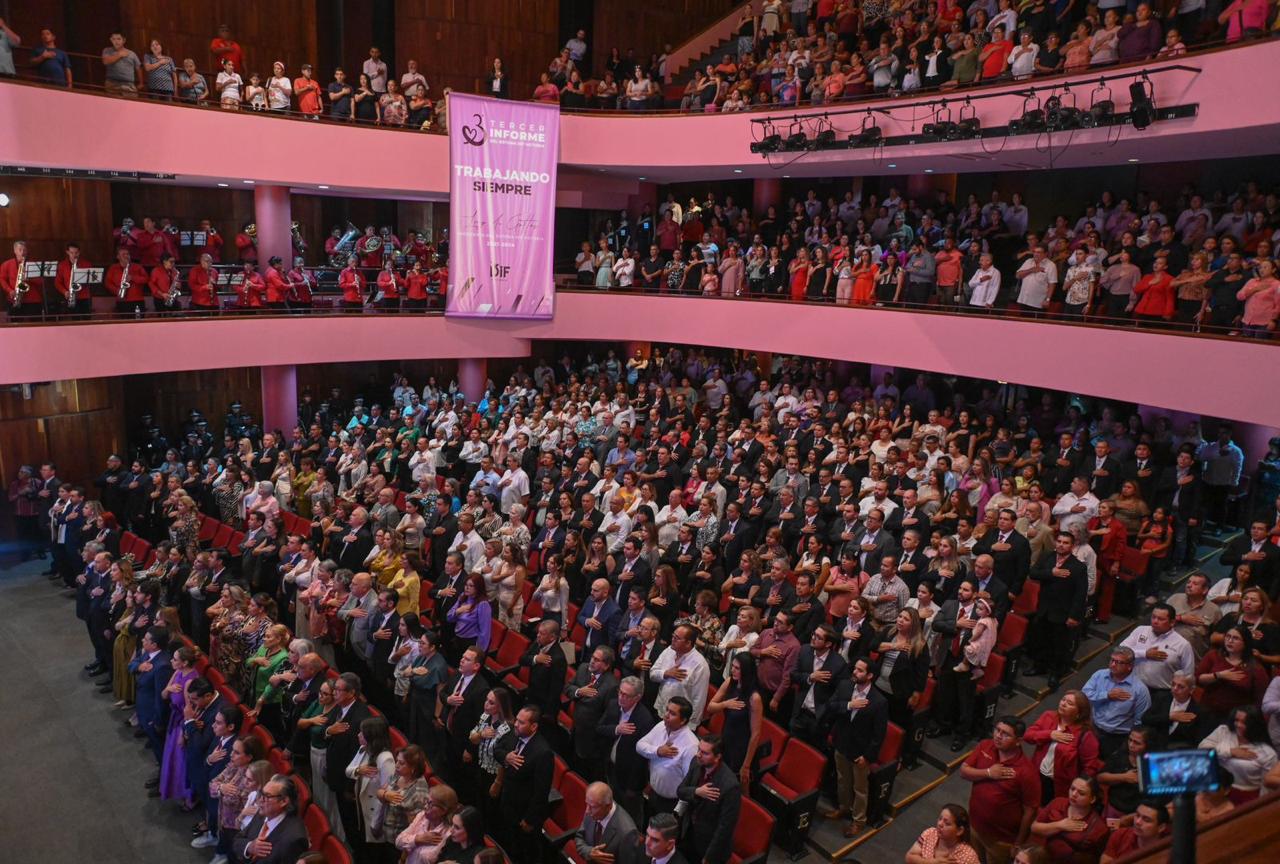 En el acto cívico de rendición de cuentas y transparencia celebrado en el Centro Cultural Tamaulipas, agradeció y reconoció el invaluable apoyo de la Dra. María de Villarreal, presidenta del Sistema DIF Tamaulipas y respaldo del gobernador Américo Villarreal Anaya para llevar con éxito las actividades de bienestar a los sectores más vulnerables.