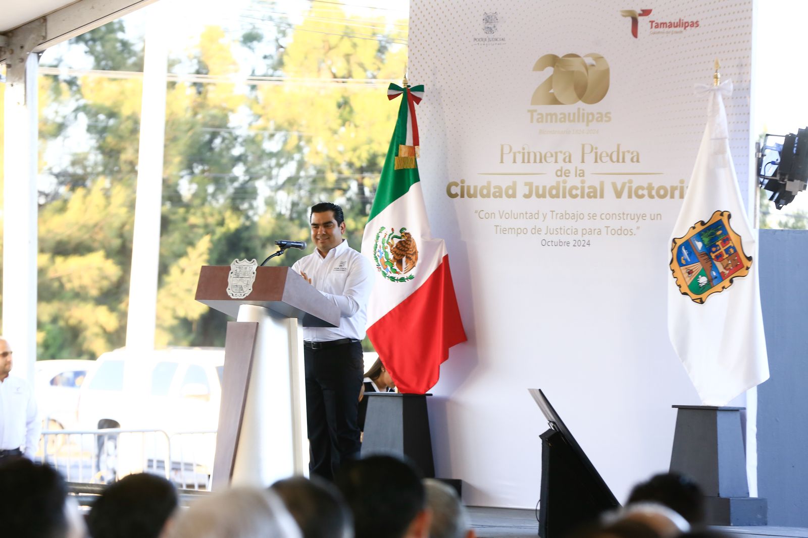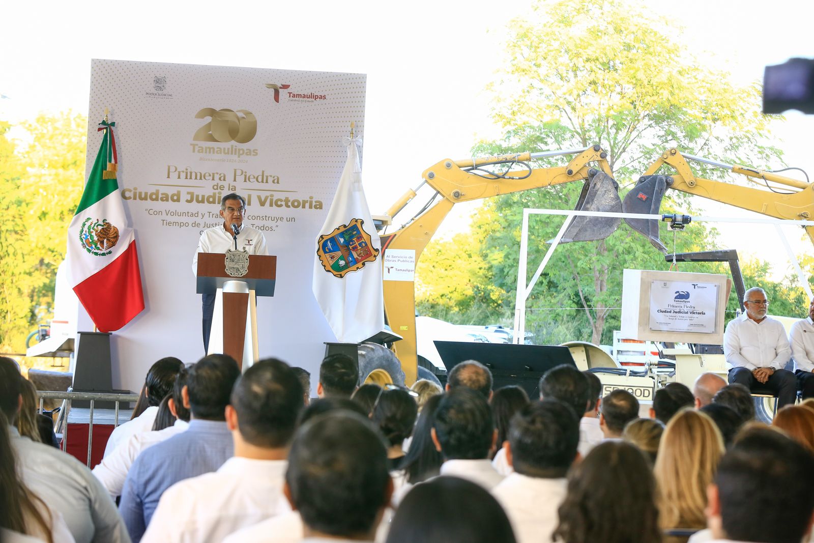 Al colocar la primera piedra de la construcción de la nueva Ciudad Judicial en Victoria, que tendrá una inversión de 275 millones de pesos, el gobernador Américo Villarreal Anaya, reiteró todo su apoyo para la modernización y dignificación de las condiciones materiales para el desempeño de la delicada misión de impartir justicia.