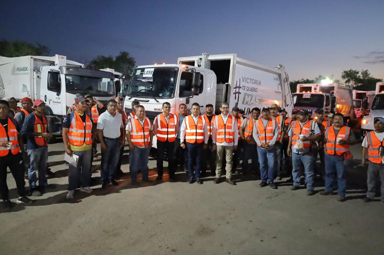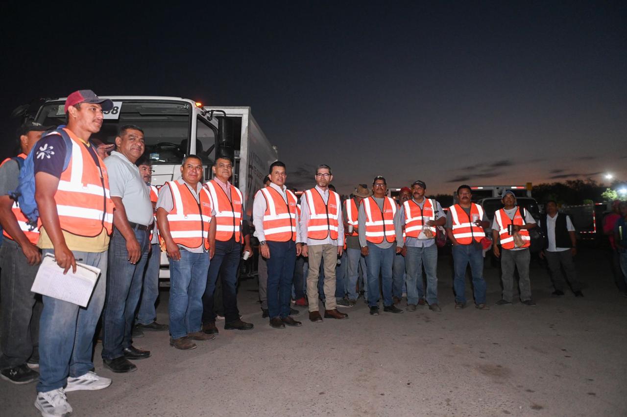A temprana hora, arribó a los campamentos de las áreas para reconocer el excelente trabajo del personal operativo que, en los primeros tres años de gobierno, lograron elevar al 96% y 92% la atención y solución a la grave problemática recibida en el 2021, la que dijo, se logró resolver con el apoyo del Gobernador Américo Villarreal Anaya y el empeño y disposición de los trabajadores del Ayuntamiento.