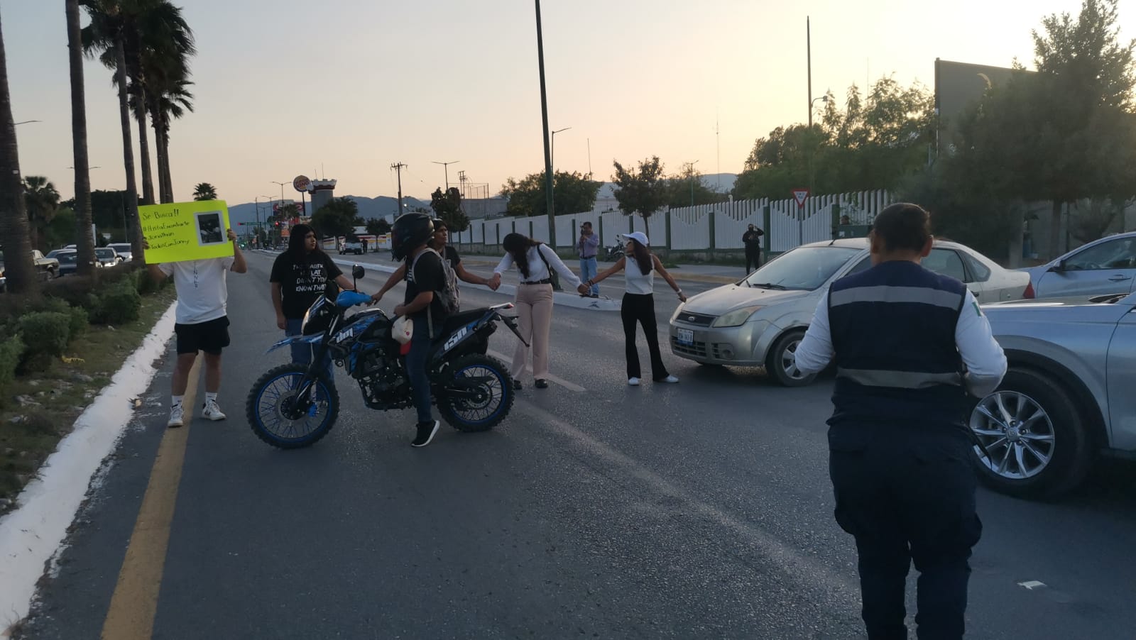 Poco después de las 5:00 de la tarde, a la altura de un salón de eventos, alrededor de 30 personas bloquearon la vialidad tanto en carriles centrales como laterales para impedir el acceso a todo tipo de vehículos.