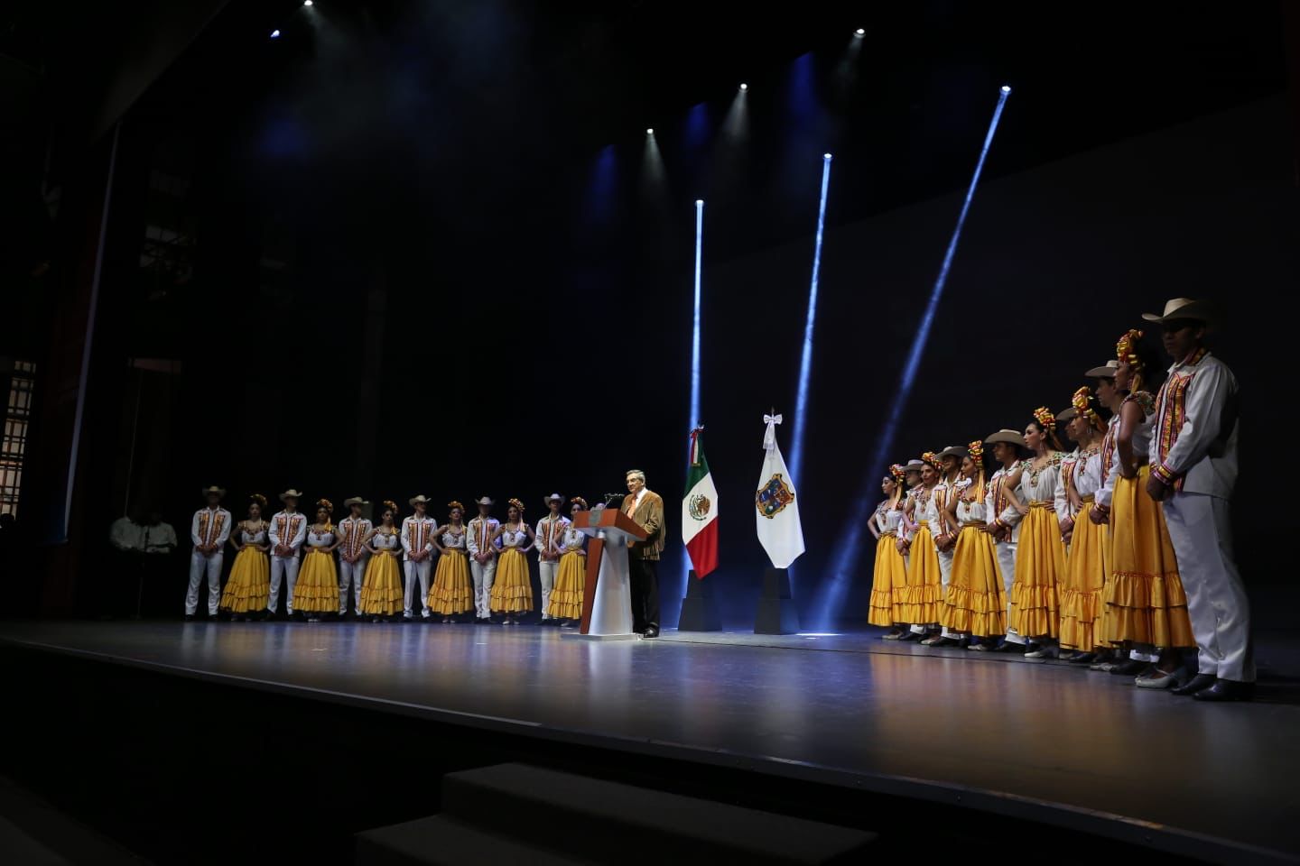 En la ceremonia protocolaria también acompañó al gobernador, Silvia Casas González, secretaria de Bienestar Social, además de legisladores, funcionarios y la representante de la comunidad artística del estado.