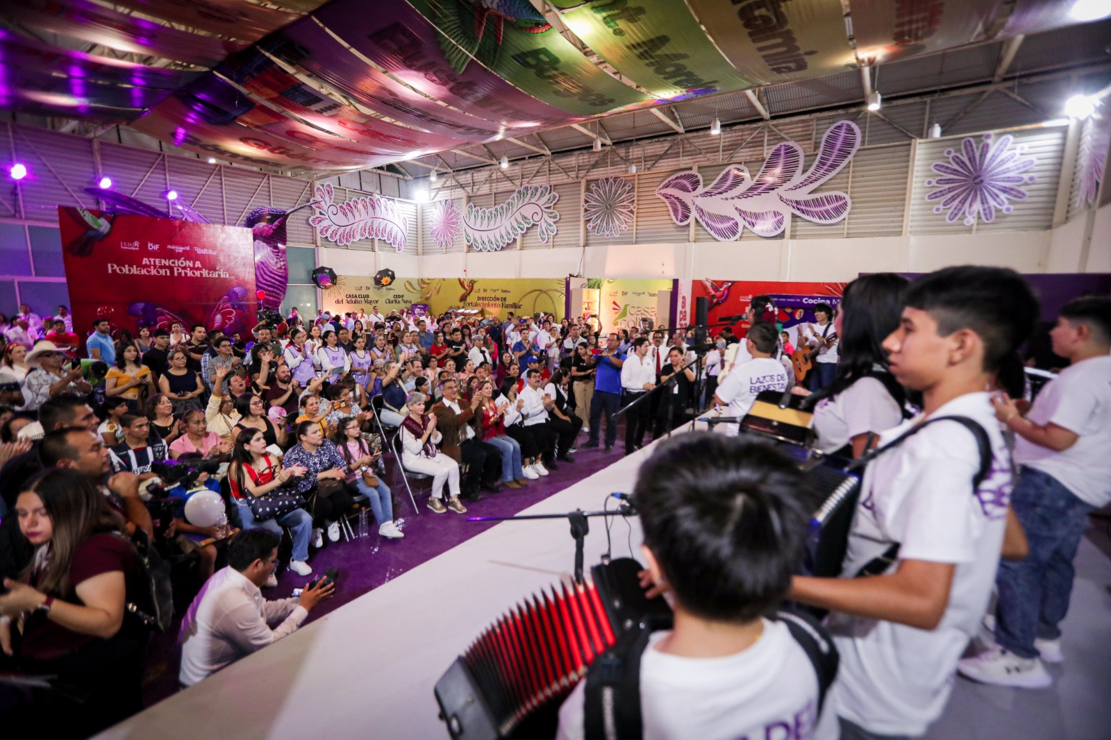 En la parte artística se contó con la participación del grupo musical “Viva la Paz” formado con niñas, niños y adolescentes del programa “Lazos del Bienestar” quienes deleitaron a los presentes con temas como “La perla tamaulipeca”, “Color esperanza” y “Que canten los niños” entre otras melodías. Así mismo, el coro de la Casa Club del Adulto Mayor participó junto a varios grupos de artistas de la localidad.