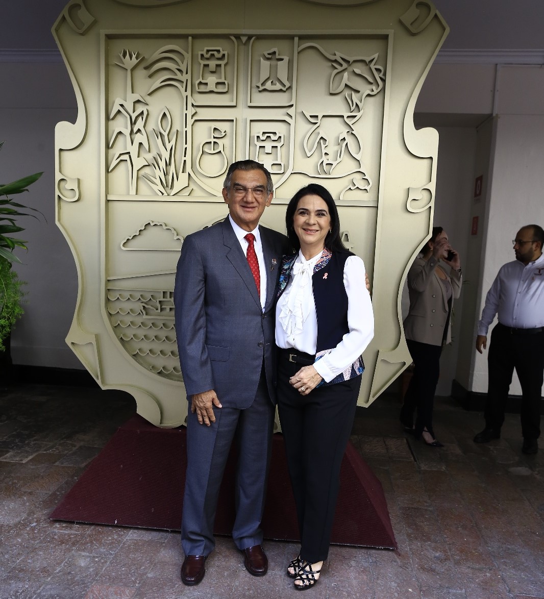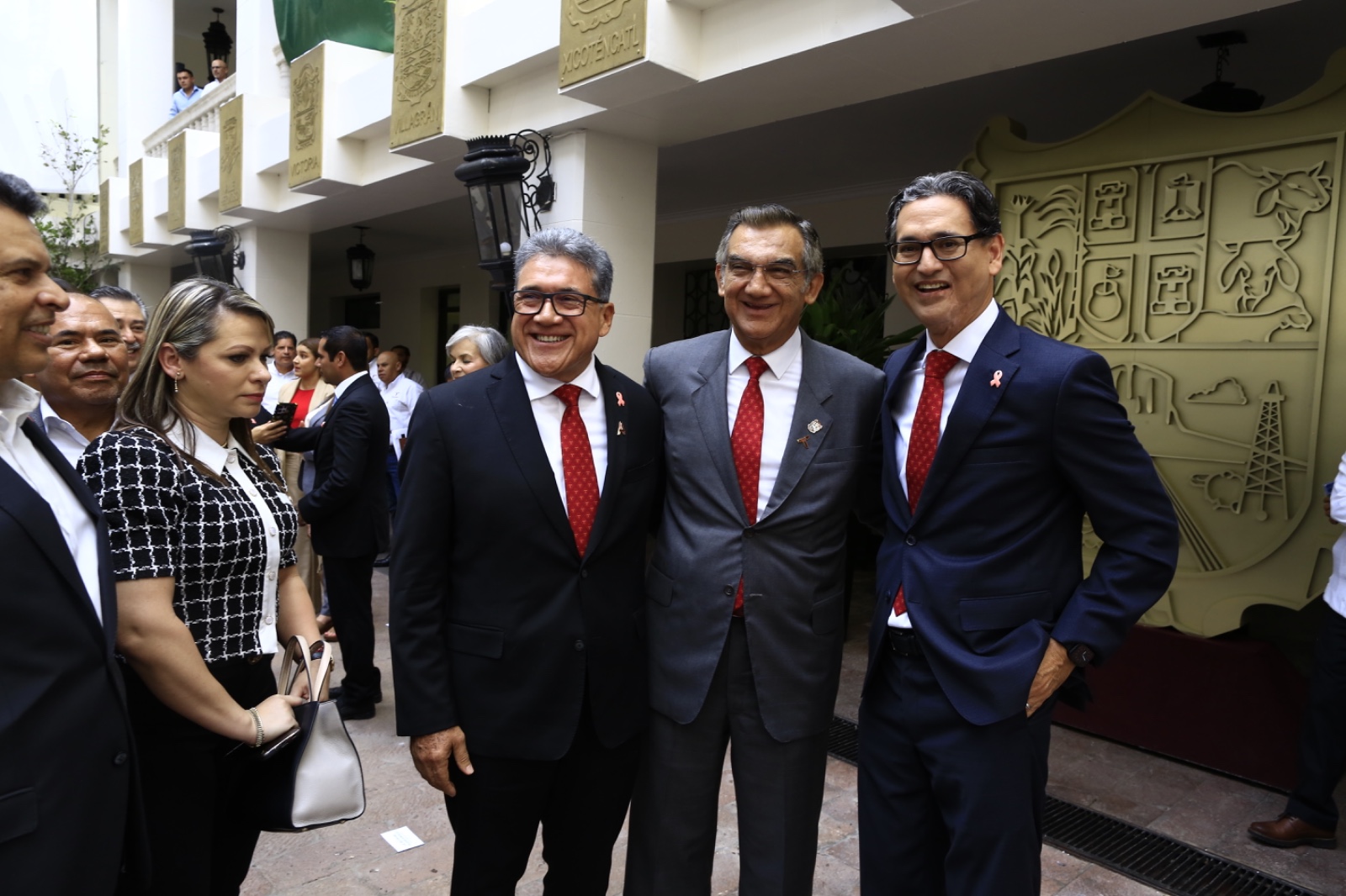 “Por el momento histórico que nos reúne, es un honor en esta ceremonia cívica de honores a la bandera nacional, en la que también rendimos tributo a los símbolos de la entidad tamaulipeca, que podamos recibirles en esta casa, un recinto que se ha dignificado, que recupera presencia y mejora las condiciones para estar a la altura de una sociedad que valora, y que valora mucho, lo que nos pertenece a todos y que forma, además, una parte de nuestra historia”, señaló.
