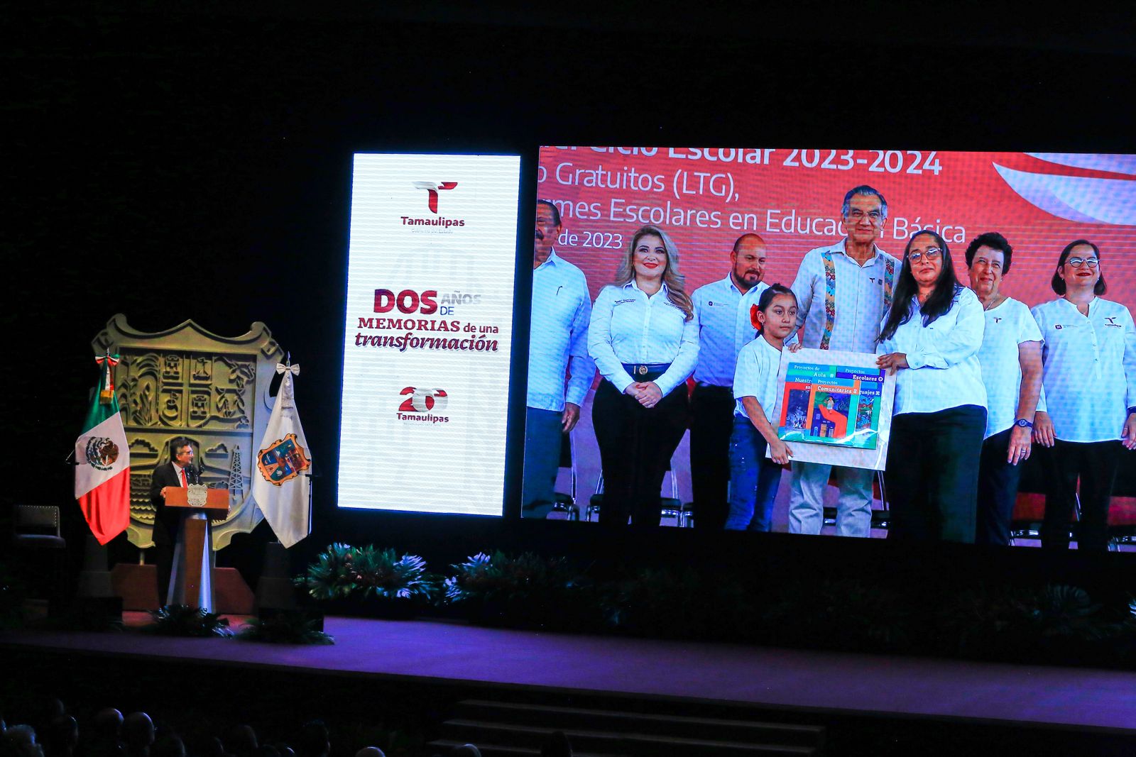 Al compartir con las y los tamaulipecos “Dos Años de Memorias de una Transformación”, este domingo en el teatro Amalia González Caballero, junto a la presidenta del DIF Estatal, María de Villarreal, el gobernador agregó que, en este momento excepcional de nuestra historia, Tamaulipas va junto con la presidenta Claudia Sheinbaum Pardo, por el segundo piso de la Cuarta Transformación.