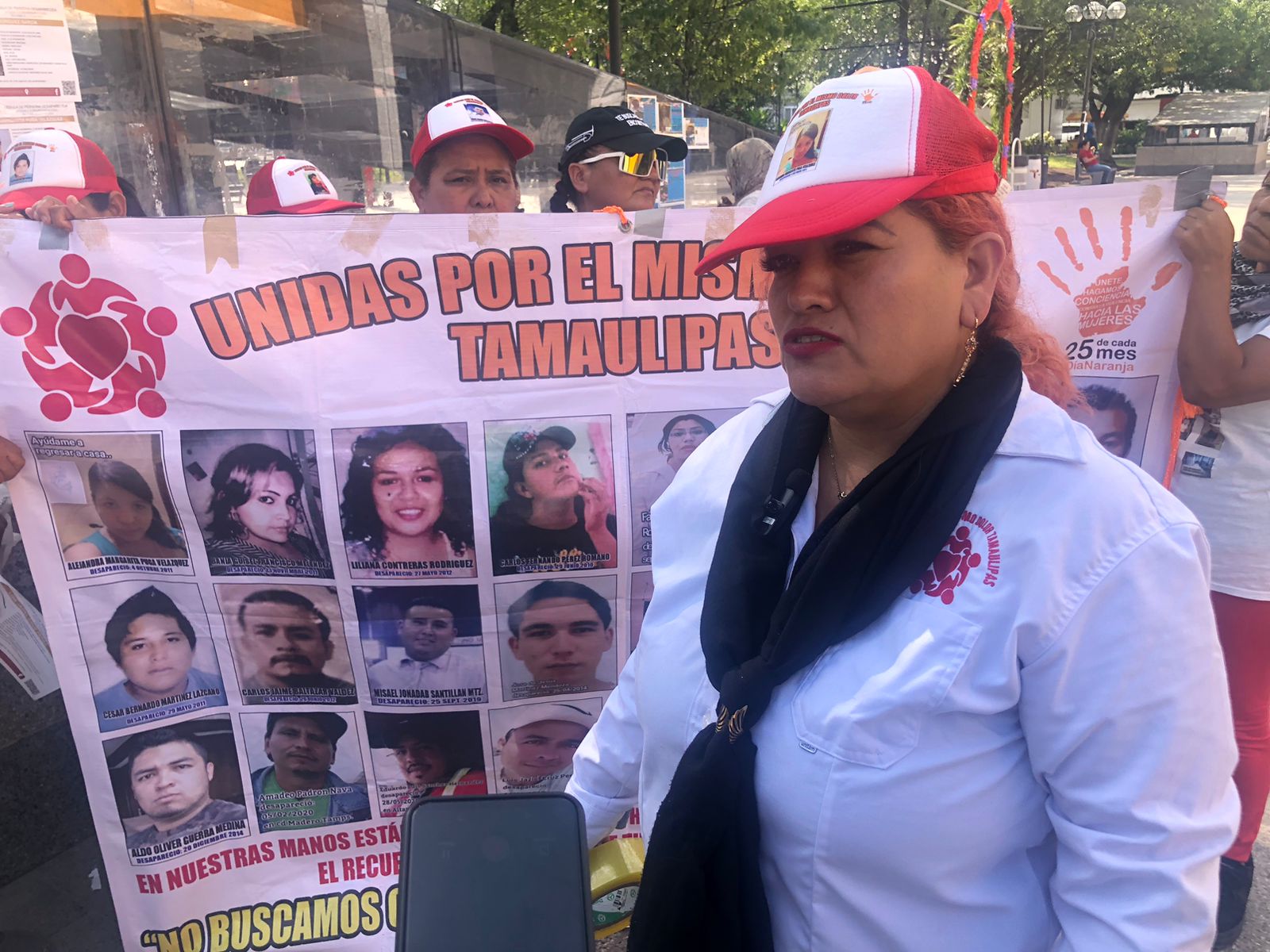 Alejandra Velázquez Abundis, al ser entrevistada en la Plaza Juárez mientras colocaba cartelones de búsqueda de personas desaparecidas, refirió; “soy representante del Colectivo Unidos Por el Mismo Dolor Tamaulipas con sede en Tampico”.