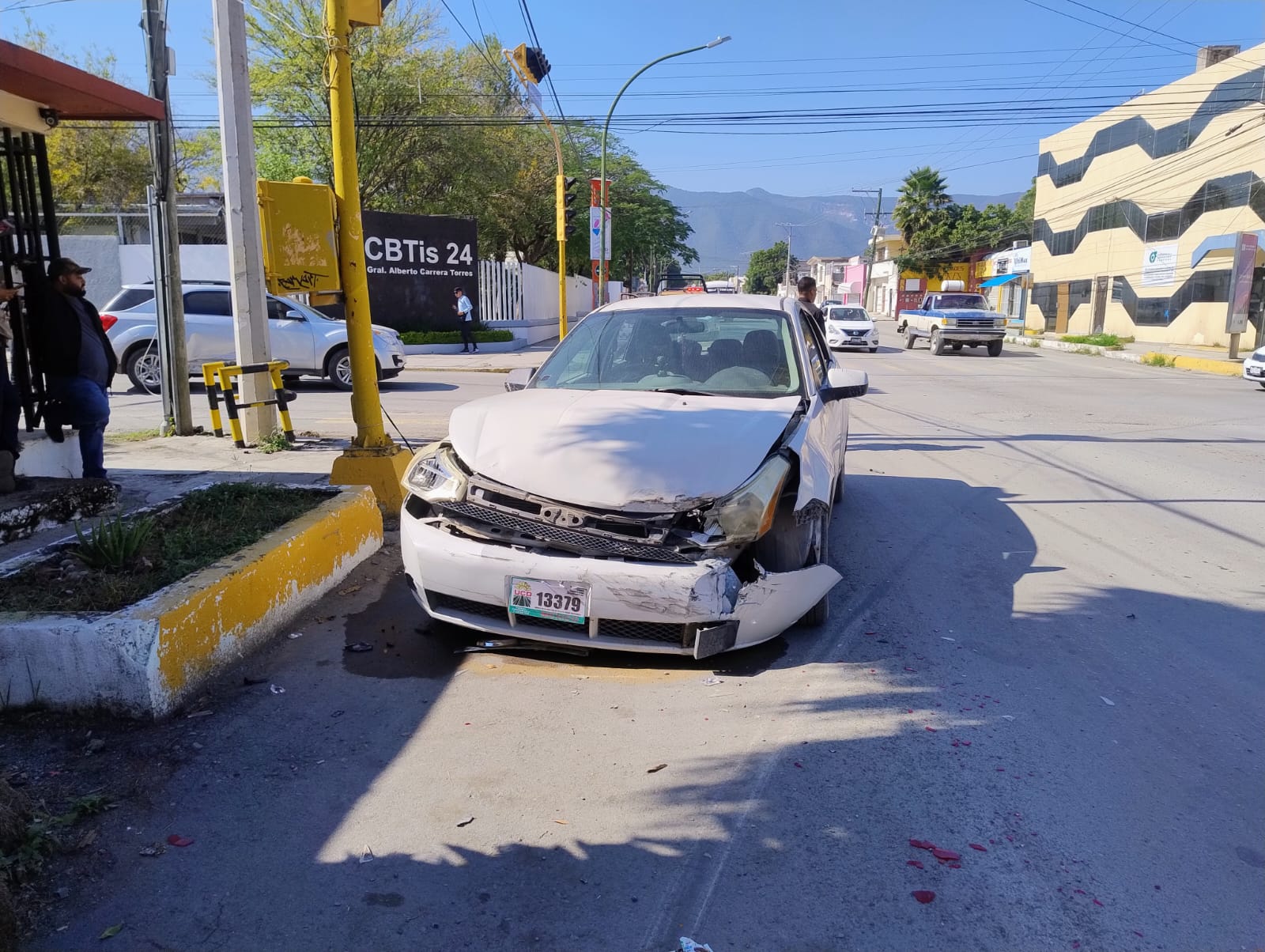 El accidente, que además dejó cuantiosos daños materiales, ocurrió esta tarde cuando un automóvil Ford Focus circulaba por la calle Carrera Torres en sentido de oriente a poniente.