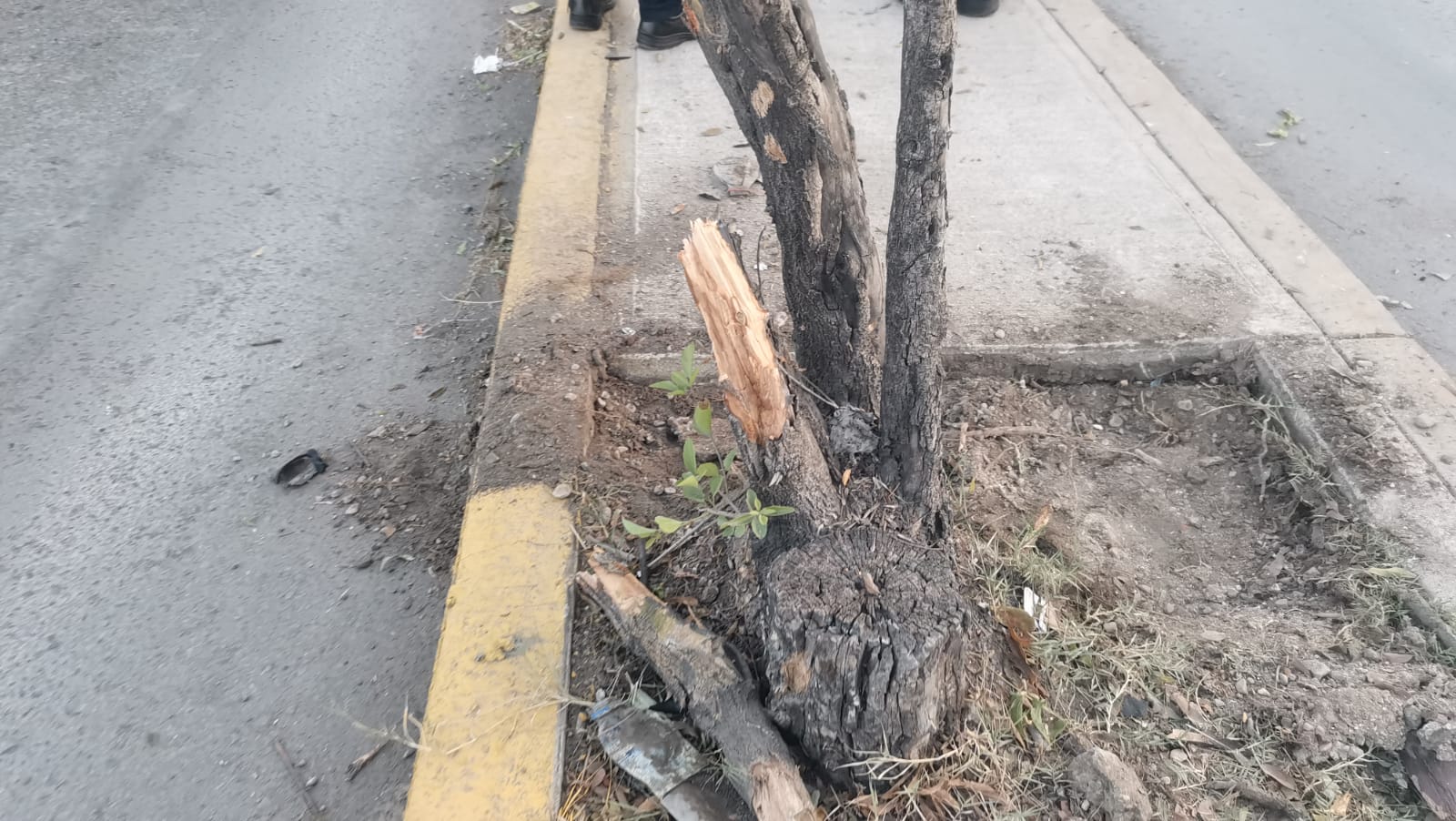 Ciudad Victoria, Tamaulipas (13 de diciembre de 2024).- Por manejar a exceso de velocidad, un conductor perdió el control de su camioneta y después de impactar un pequeño árbol se estrelló de manera frontal contra un señalamiento tipo bandera.